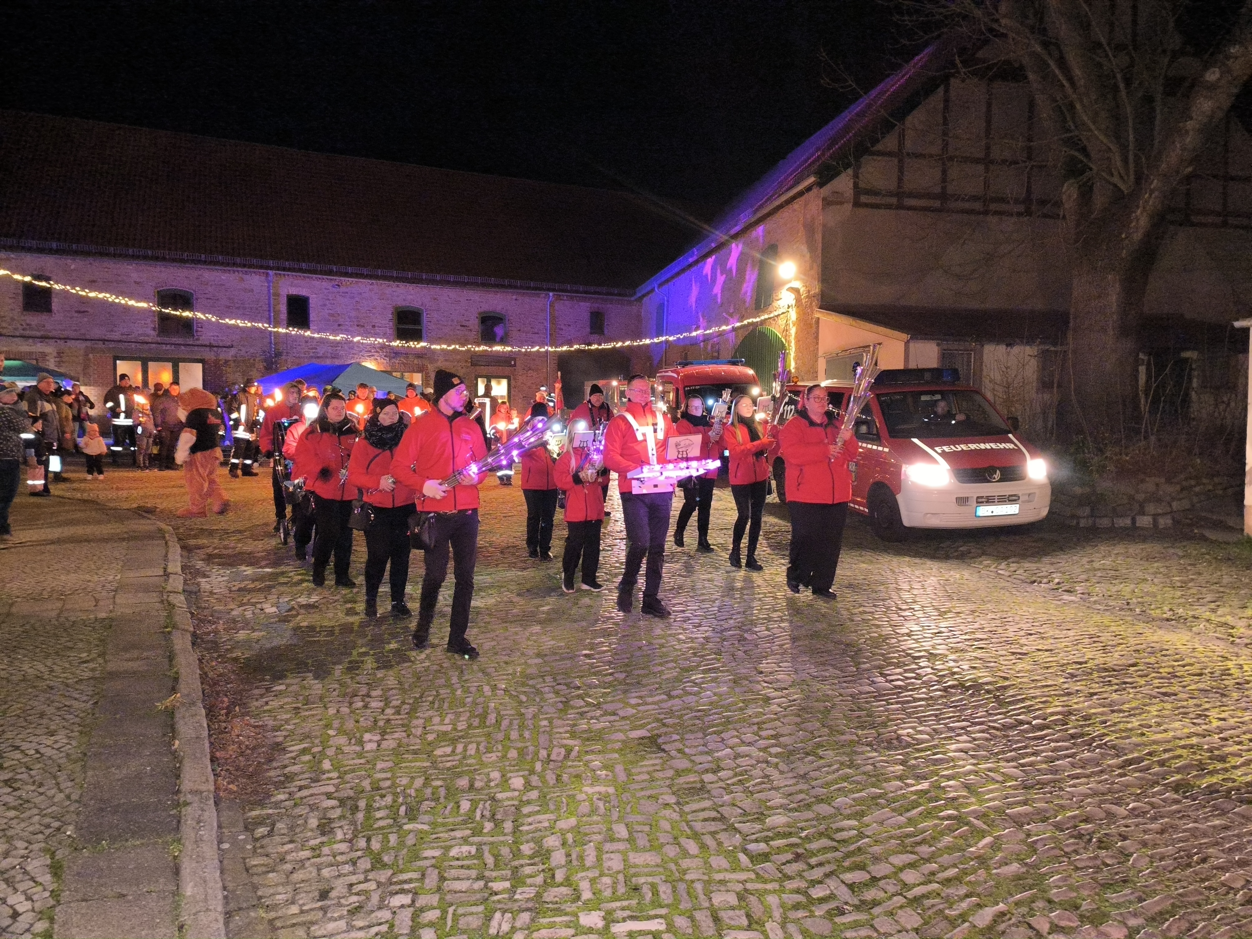 Gemeinsam mit vielen kleinen und großen Besuchern erlebte Maskottchen Bandi heute bei der Freiwilligen Feuerwehr Barneberg seinen ersten Fackelumzug. Mit Fackeln, Laternen und Blaulicht in musikalischer Begleitung des Schalmeienorchester Barneberg ging es durchs Dorf.