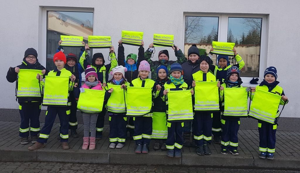So hatte Jugendfeuerwehrwart David Noack und sein Stellvertreter Kevin Löhning, für alle Kinder neue Turnbeutel dabei. Diese wurden von der Wohnungsgenossenschaft „Neues Leben“ eG gesponsert. Der Erlös hierfür stammt aus den Einnahmen des Mieterfestes im vergangenen Jahr. Die Kinder freuten sich darüber, dass sie nun auch alle einheitlich bei dem z.B. jährlich stattfindenden Sportfest der Jugendfeuerwehren, auftreten können. Seit vielen Jahren schon unterstützt die Wohnungsgenossenschaft die Arbeit der Oschersleber Feuerwehr- und Jugendfeuerwehr. Auch für die Kinderfeuerwehr „Bodelöschis“ gab es neue Turnbeutel. Kinderfeuerwehrwartin Manon Kluge, konnte diese am vergangenen Samstag an die Kinder übergeben, die sich natürlich riesig darüber freuten. Ebenfalls durch Spenden und der Stadt Oschersleben finanziert.  An dieser Stelle noch einmal herzlichen Dank an alle Unterstützer.