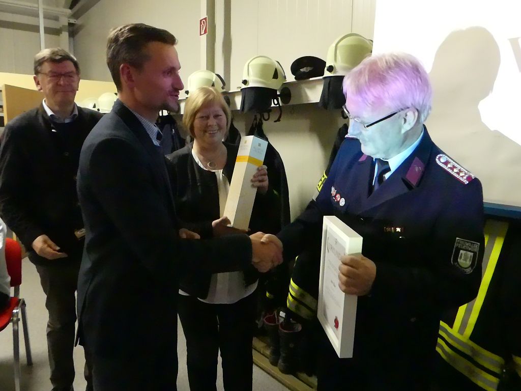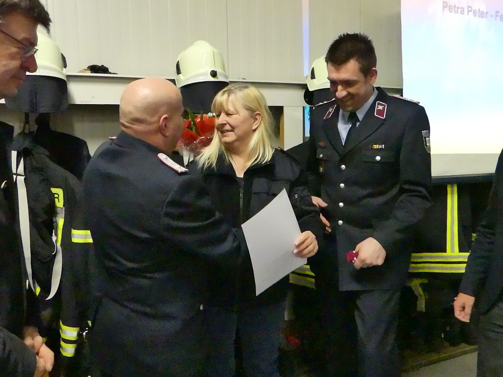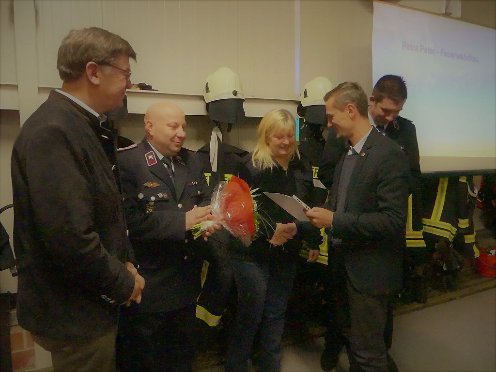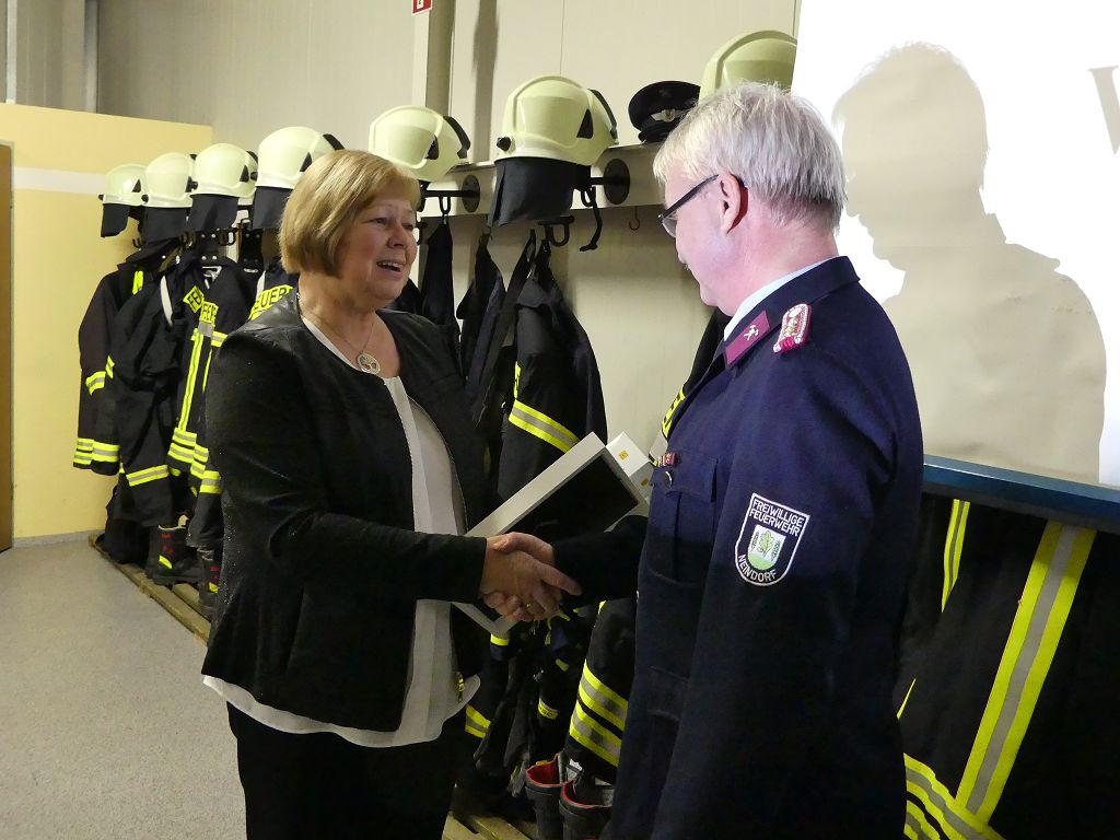 konnte die Landtagspräsidentin Gabriele Brakebusch, Oscherslebens Bürgermeister Benjamin Kanngießer, Ortsbürgermeister Dr. Wolfgang Nehring, sowie den stellv.Stadtwehrleiter Carsten Loof als Gäste begrüßen. Die Landtagspräsidentin hatte auch eine besondere Überraschung dabei. Jugendfeuerwehrwart Veit Peter erhielt aus den Händen von Gabriele Brakebusch den Ehrenamtpreis der CDU Fraktion im Landtag Sachsen-Anhalt. Matthias Bange informierte über die Arbeit des Jahres 2018. So wurde die Neindorfer Ortswehr zu 24 Einsätzen alarmiert. Davon 6 Kleinbrände, 2 Mittelbrände, 9 technische Hilfeleistungen, 4 Auslösungen eine Brandmeldeanlage, 2 Alarme für die örtliche Einsatzleitung und eine Einsatzübung. Der August war mit 8 Alarmierungen der einsatzstärkste Monat. Aufgrund der Trockenheit kam es zu einigen Böschungs- und Ackerbränden. Wehrleiter Matthias Bange lobte die gute Zusammenarbeit zu den Landwirten, die stets mit ihren Wasserkaupen zur Stelle waren. Weiterhin berichtete der Ortswehrleiter über 1200 Ausbildungsstunden, im Rahmen der Standortausbildung für die Einsatzkräfte. Wehrmutstropfen war im letzten Jahr die Stilllegung des MTF (Mannschaftstransportfahrzeug). Das 20 Jahre alte Fahrzeug hat keine TÜV Zulassung mehr bekommen. So berichtete Matthias Bange weiter über das durchgeführte Osterfeuer, die Teilnahme am Tanker Pulling in Oschersleben, sowie über den Tag der offenen Tür. Auch Jugendfeuerwart Veit Peter zog eine positive Bilanz für das Jahr 2018. So hat die Neindorfer Jugendfeuerwehr 5 Mitglieder. Gemeinsam mit den Jugendwehren aus Hornhausen, Beckendorf und Altbrandleben bilden sie die Jugendfeuerwehr „Hohes Holz“ mit zusammen 20 Mitgliedern. Jeden 2.Freitag wird sich zur Ausbildung getroffen. An vielen Veranstaltungen nahmen die Jugendlichen teil. U.a. am Sportfest in Oschersleben, am Sommerlager und Seifenkistenrennen der Oschersleber Jugendfeuerwehren, am Schwimmbadfest, sowie am Tag der Regionen. Auch fand eine Fahrradtour statt. Im Anschluss an den Jahresberichten ergriff Bürgermeister Benjamin Kanngießer das Wort und bedankte sich für die geleistete Arbeit. Er überbrachte die die freudige Nachricht das ein neues MTF für die Ortsfeuerwehr, sowie auch für die Feuerwehr Beckendorf in diesem Jahr beschafft wird. Er hob auch die Wichtigkeit der Feuerwehr in dem kleinen Ortsteil hervor. Das spiegelt sich in den 24 Einsätzen wieder. Ortsbürgermeister Dr. Wolfgang Nehring und der stellv. Stadtwehrleiter Carsten Loof schlossen sich den Grußworten an und lobten ebenfalls die Arbeit der Wehr, die neben 25 Aktiven Einsatzkräften und den Mitgliedern der Jugendfeuerwehr, auch über 12 Mitglieder in der Alters- und Ehrenabteilung verfügt. Während der Jahreshauptversammlung wurden neben Veit Peter, auch der Kamerad Eckard Bahr für eine 40zig jährige Mitgliedschaft geehrt. Kameradin Petra Peter wurde zur Feuerwehrfau befördert. Auch der Feuerwehrförderverein zog Bilanz. So berichtete der Fördervereinsvorsitzende Hans Joachim Sperling über die verschiedenen Aktivitäten. So konnten im letzten Jahr Poloshirts für die Einsatzkräfte und der Jugendfeuerwehr angeschafft werden. Weiterhin gab es auch eine Wanderung, die jährliche Seniorenweihnachtsfeier und einen Arbeitseinsatz am Gerätehaus. Auch für dieses Jahr sind verschiedene Aktivitäten geplant. Nach dem Kassenbericht konnte der Vorstand entlastet werden.