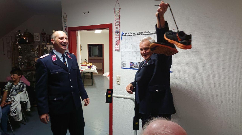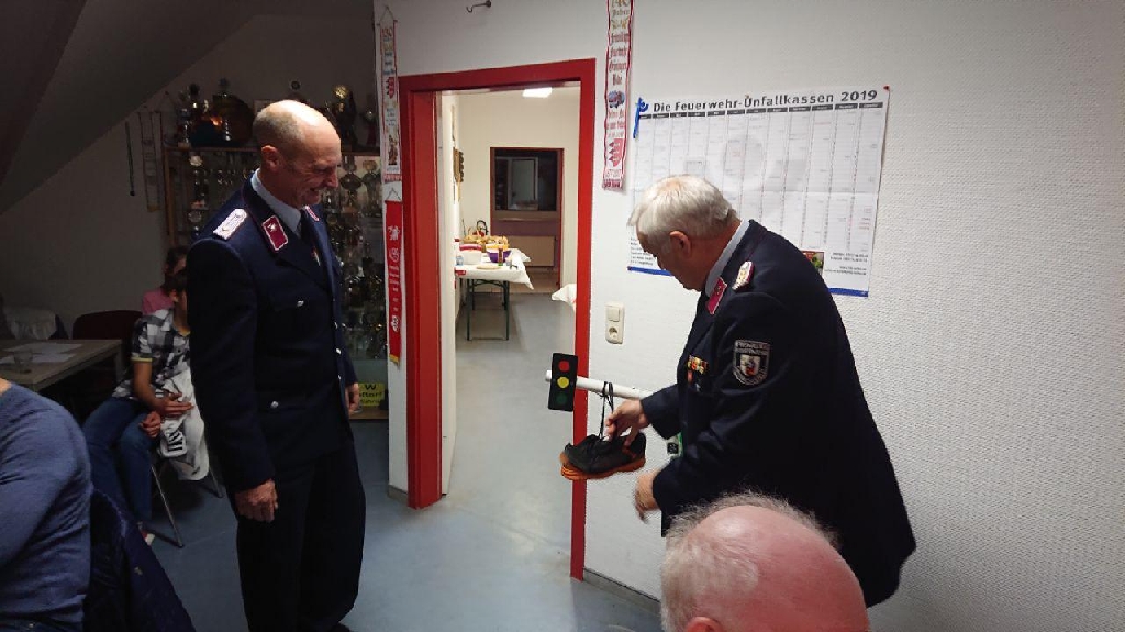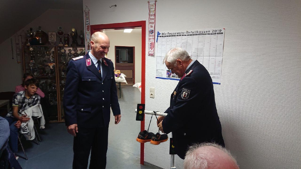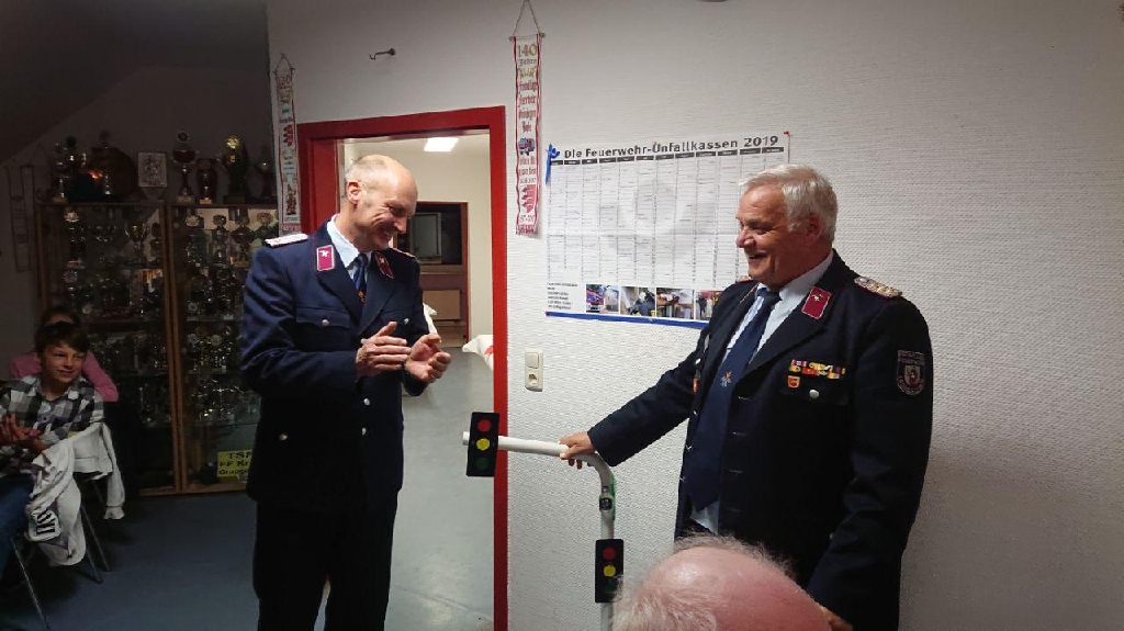 Als Krönender Abschluss erhielt der Verbandsvorsitzende Harald Hinz ein Andenken überreicht, da er Zugführer in der Westlichen Börde ist und zu einem etwas ungewöhnlichen Einsatz später eintraf und die Ortswehr diesen schon abgearbeitet hatte, konnte er das Einsatzstichwort im Modell nun nachholen.