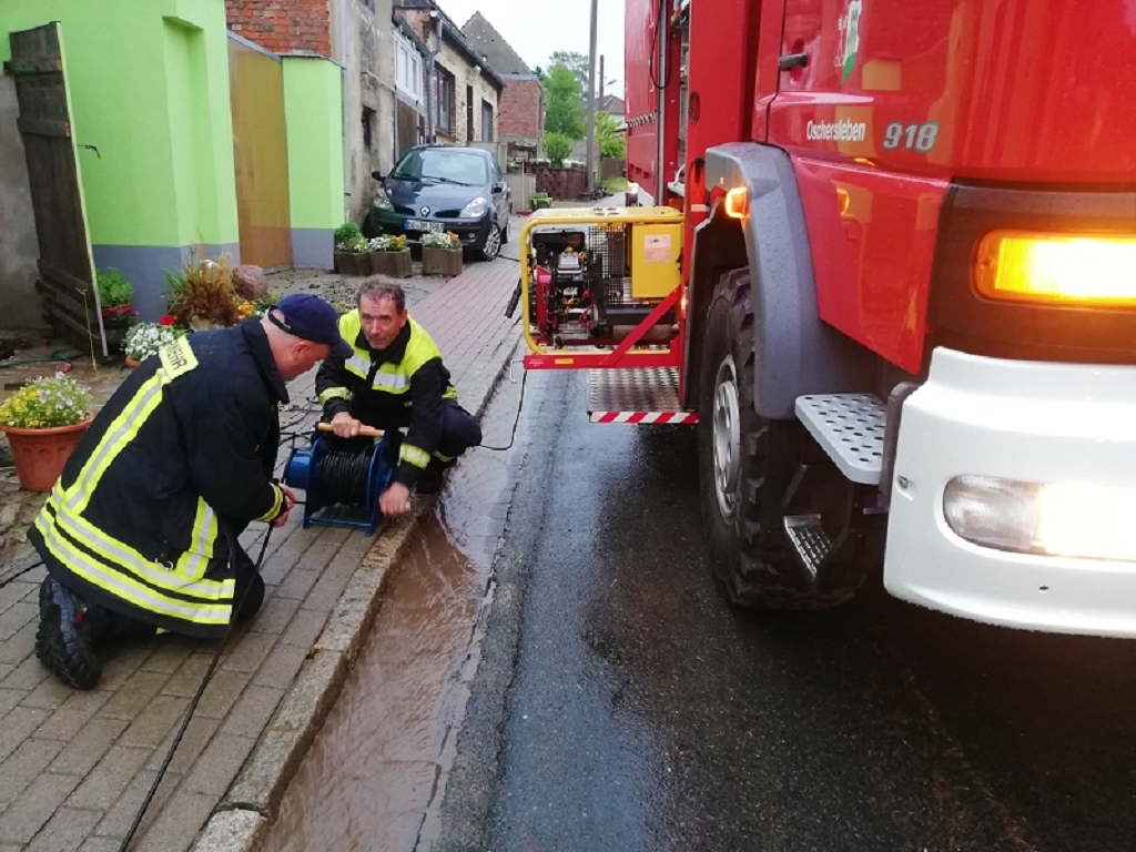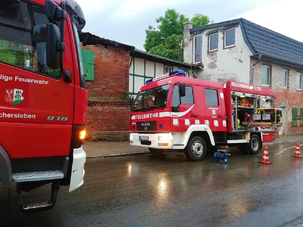 In Schermcke mussten die Kräfte der Feuerwehr Regeneinläufe frei machen, damit das Wasser abfließen konnte. In Beckendorf liefen Schlamm und Wasser vom Acker in darunterliegende Häuser. In Neindorf stürzten Teile eine Böschung auf Fußweg und Straße. In Hadmersleben stürzte ein Baum auf die Straße und musste von der Feuerwehr beseitigt werden.