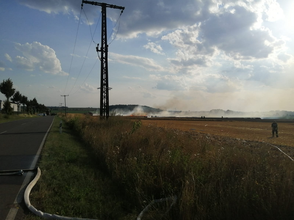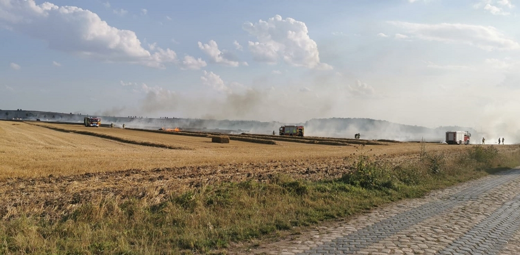 Einsatz FF Hötensleben brennt Strohpresse und Stoppelacker