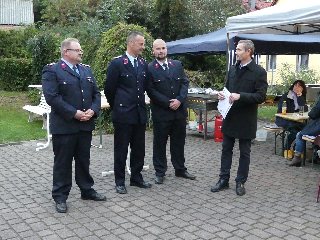 Weiterhin finanzierte die Stadt Oschersleben in neue Atemschutztechnik für 20000€. Ortswehrleiter Kay Nahrstedt konnte als Gäste Bürgermeister Benjamin Kanngießer, Ortsbürgermeisterin Inge Tamm, Sachbearbeiterin Brandschutz Anette Jost und den stellv. Stadtwehrleiter Carsten Loof begrüßen. Mit der Übergabe des neuen Einsatzfahrzeuges, wurde das Vorgängerfahrzeug in den Ruhestand verabschiedet. Dieses stand seit dem Jahr 1993 Im Dienste der Hornhäuser Feuerwehr.