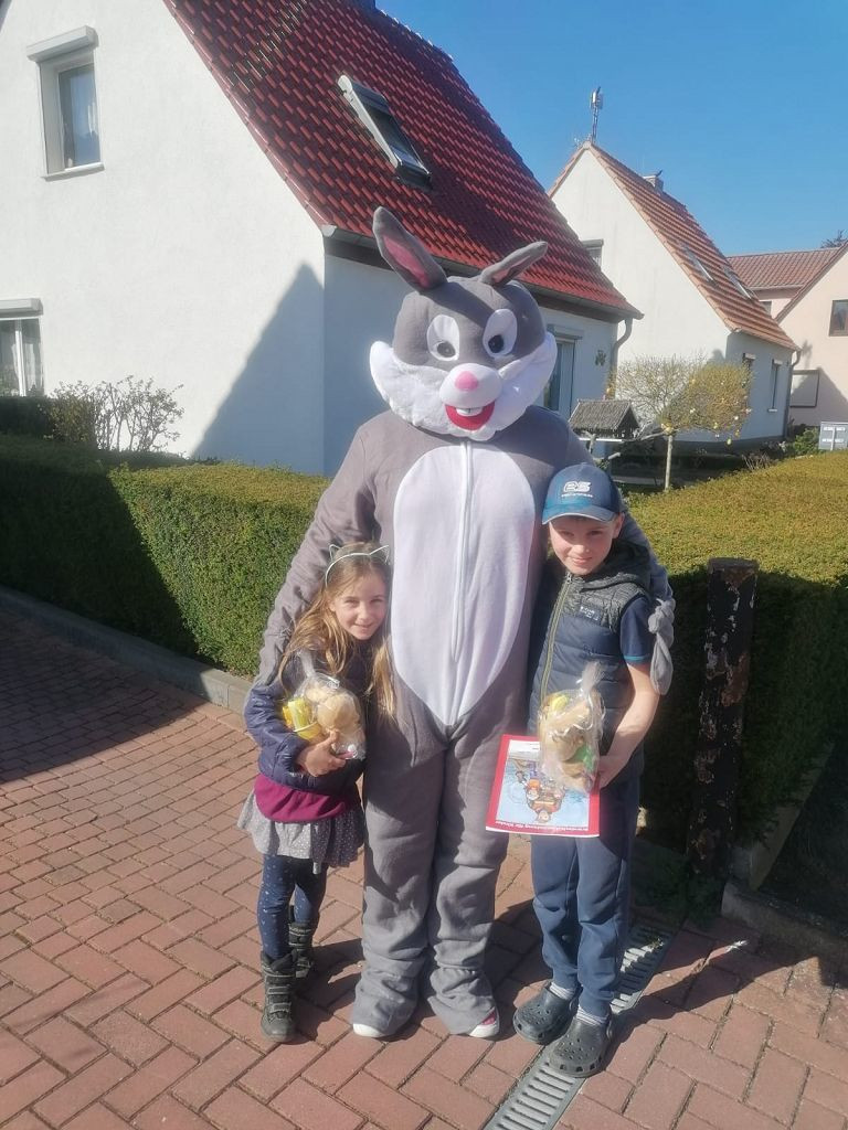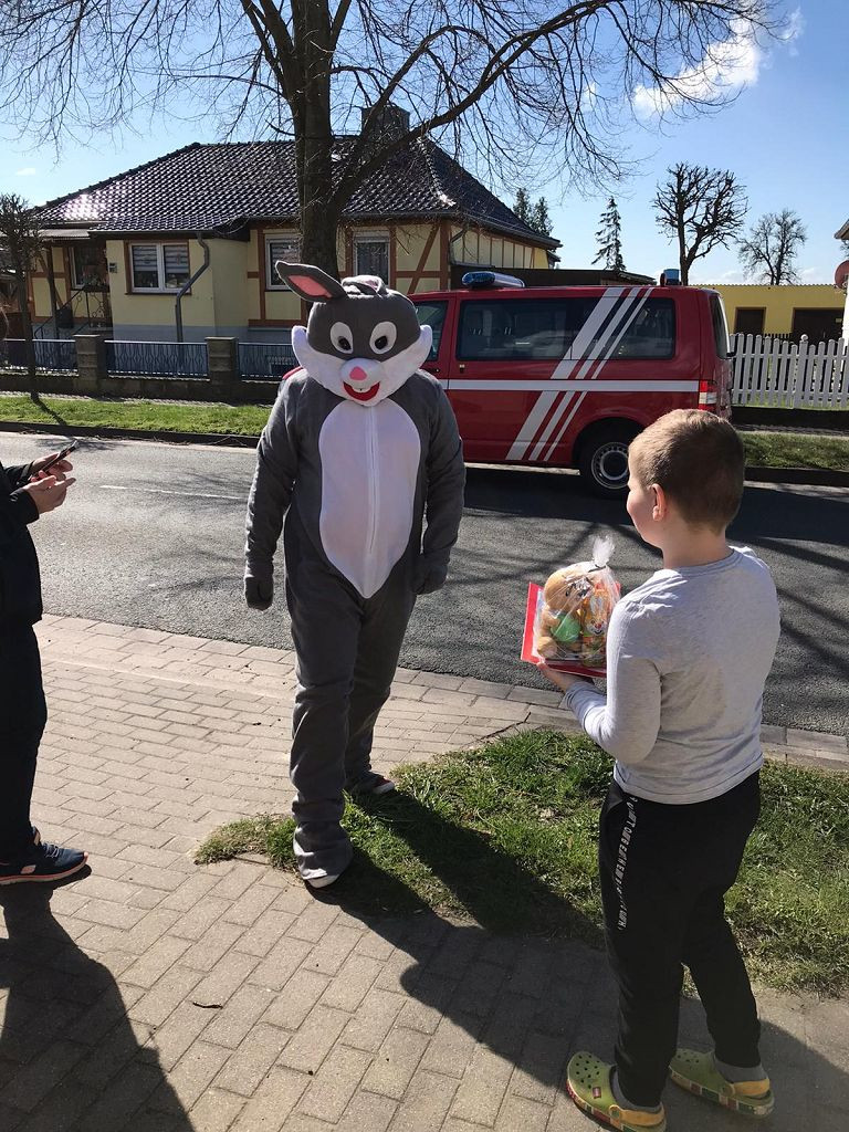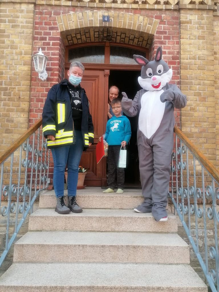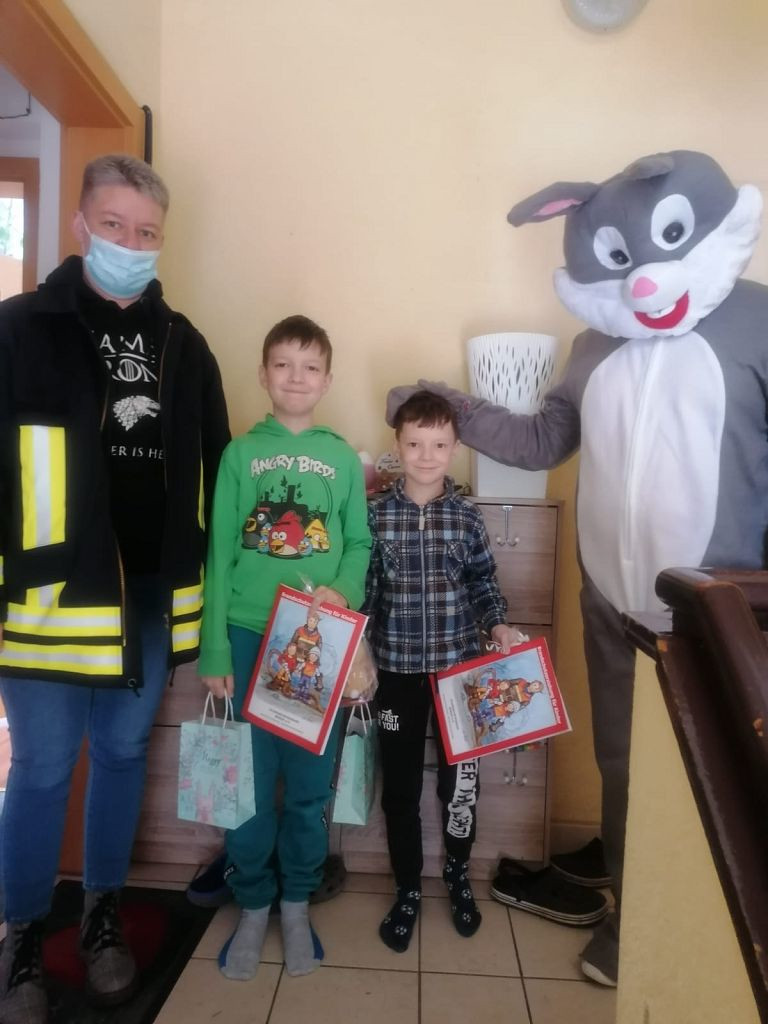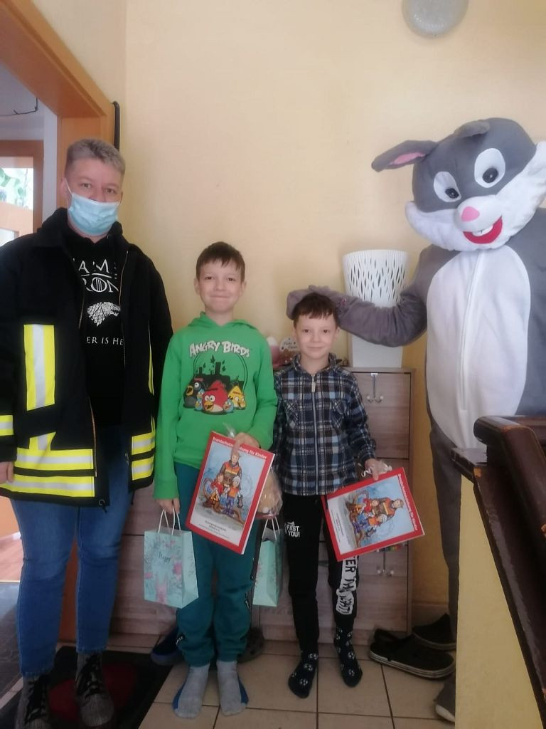 Die „Schlauchstrolche“ besuchten das Rot Kreuz Zentrum „Obere Aller“ in Eilsleben und überbrachten ein herzliches Dankeschön für die geleistete Arbeit. Im Gegenzug bekamen alle Kinder die so fleißig mit gebastelt haben, Besuch vom „Osterhasen“. Dieser hatte für jedes Kind eine kleine Überraschung dabei.