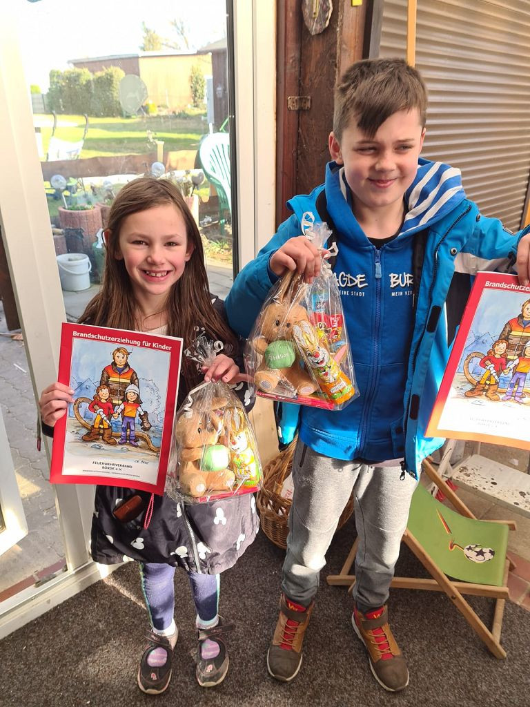 Zum einem die Oschersleber Kinderfeuerwehr “Bodelöschis“ und zum anderen die Kinderfeuerwehr „Schlauchstrolche“ Barneberg/Völpke. Ziel der Aktion war, in der aktuellen Situation besonderen Menschen bzw. Organisationen, Betriebe oder Verwaltungen, ein Dankeschön zu überbringen.