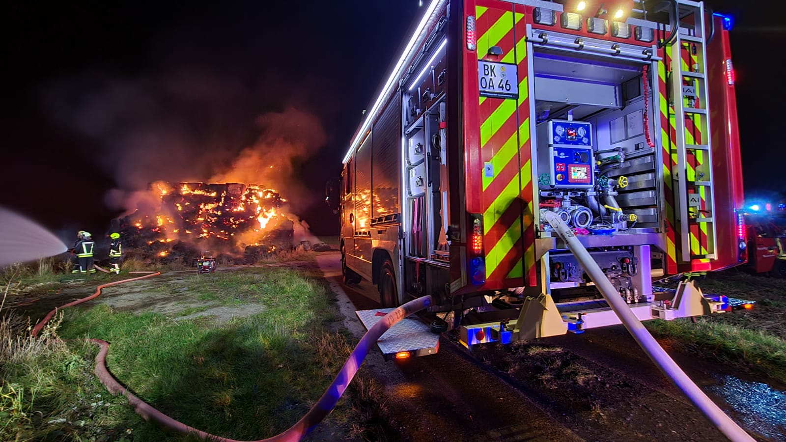 Am 31.10.2021 um 02:18 Uhr wurden die Feuerwehren Hötensleben, Ohrsleben und die Führungseinheit der Feuerwehr der Gemeinde Obere Aller zu einem Strohdiemenbrand in voller Ausdehnung am sog. Ziegeleiteich alarmiert.