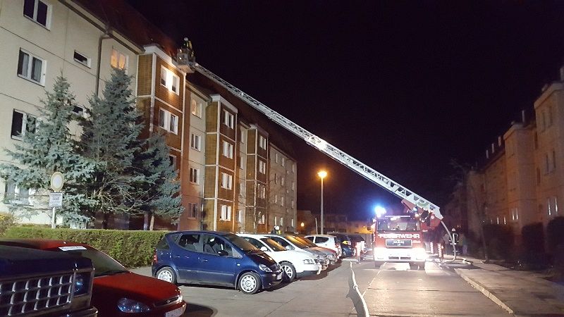 Schon auf der Anfahrt kam von der Rettungsleitstelle die Information, dass sich noch eine Person in der betroffenen Dachgeschosswohnung aufhielt. Dieses bestätigte sich bei der Ankunft.