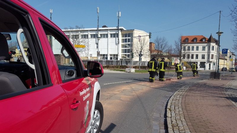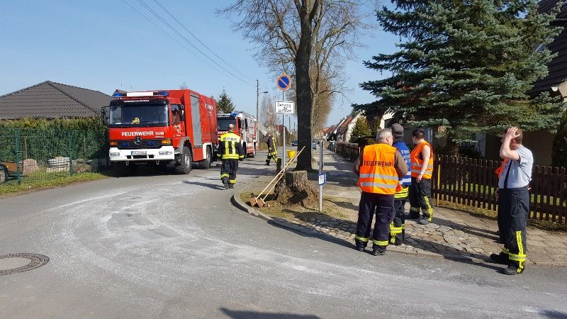 Um 14.19 Uhr erfolgte eine weitere Alarmierung für die Oschersleber Feuerwehr. Im Bereich der Hornhäuserstraße wurde eine Ölspur gemeldet. Mit dem ELW und dem MTF begaben sich die Kräfte zur Einsatzstelle. Der Verursacher gab an, sich sein Fahrzeug im Fillerweg beschädigt zu haben. Nach einer weiteren Erkundung durch den Einsatzleiter der Feuerwehr und der Polizei wurde entschieden, weitere Kräfte der Oschersleber Ortsfeuerwehr nach zu alarmieren. Die Einsatzkräfte kamen in der Weststraße, Sachsenlandstraße und dem Fillerweg zum Einsatz. Während der Reinigungsarbeiten kam es zu Verkehrsbehinderungen. Neben der Feuerwehr und der Polizei kam auch eine Kehrmaschine zum Einsatz. Um kurz nach 16.00 Uhr konnte der 2. Einsatz an diesem Samstag beendet werden.