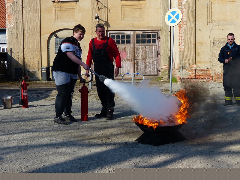 Auch in diesem Jahr wurde Brandschutztechniker Thomas Dahms von der Firma Minimax mit ins Boot geholt. Neben Erläuterungen zu verschiedenen Warn- und Hinweisschildern, gab es auch Informationen zu den verschiedenen Brandklassen und den dazugehörenden Löschmitteln. Damit die artistischen Auftritte und verschiedenen Feuerspiele noch sicherer werden, bekamen die Mitglieder der Awolinos ein paar Tipps vom erfahrenden Brandschutztechniker. Dann ging es natürlich auch an ein richtiges Feuer. So hatten alle an diesem Nachmittag die Möglichkeit einmal ein Feuerlöscher abzuschießen und diese Chance wurde genutzt. Auch die anwesenden Mitglieder der Jugendfeuerwehr hatten ihren Spaß beim Löschen der brennenden Trümmerwanne.