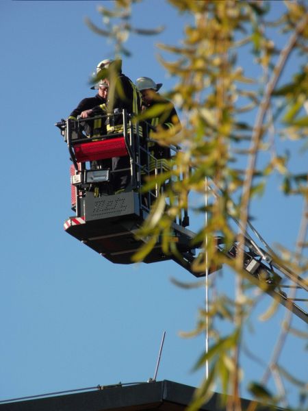 Im Anschluss wurde die Einsatzabteilung dann in zwei Gruppen eingeteilt. Jeder Gruppe erhielt eine detailierte Einweisung in die Funktionen der Korbsteuerung, verbunden mit der Möglichkeit die Steuerung der Leiter einmal selbst zu übernehmen und sich den Heimatort einmal von oben anzuschauen.
