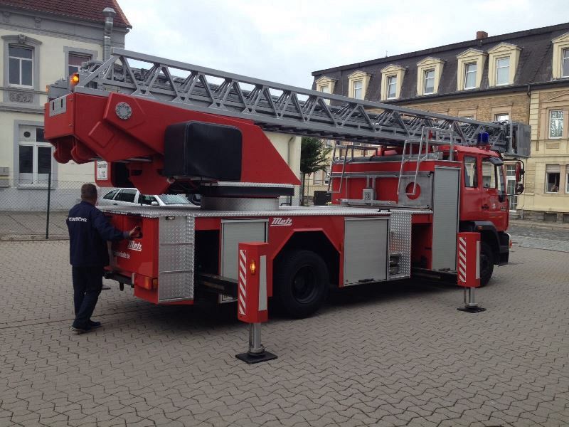 Im Anschluss ging es in die Fahrzeughalle, wo neben den Fahrzeugen, auch die Einsatzbekleidung der Feuerwehrleute besichtigt werden konnte. Da auch noch weitere Schulklassen zu Besuch der Feuerwehr anwesend waren, hatte Gerätewart Falk Zönnchen einige Fahrzeuge auf dem Hof gefahren. Darunter auch die Drehleiter, wobei einige Kinder staunten wie hoch diese ausgefahren werden kann. Regelmäßig im Jahr hat Gerätewart Falk Zönnchen diverse Schulklassen zu Gast, die sich über der Arbeit der Feuerwehr informieren wollen. Auch Jugendfeuerwehrwart Thomas Ehrhardt freut sich über das regelmäßige Interesse der Schulen an der Feuerwehr. Für die tolle Führung bekam Thomas Ehrhardt eine kleine Aufmerksamkeit von der Klasse 3a der Diesterweg - Grundschule überreicht, wofür er sich recht herzlich bedankt.