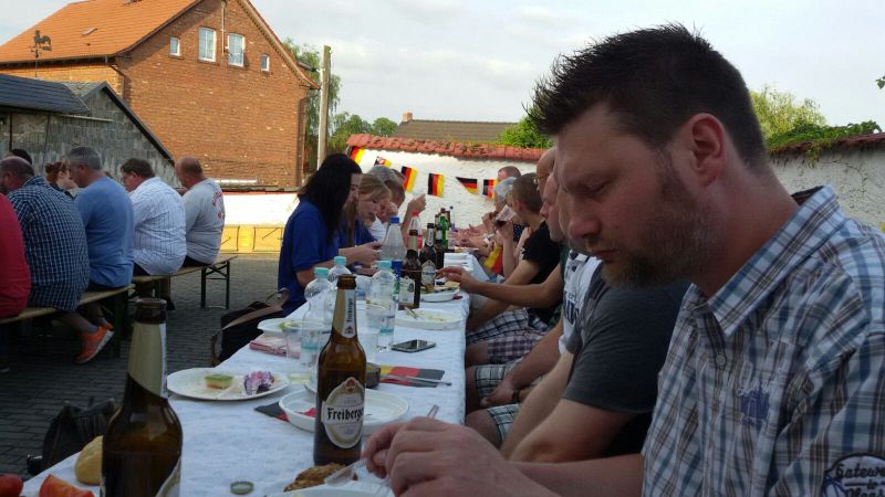 Gastgeber dieses Treffens war in diesem Jahr die Schalmeienkapelle der FF Klein Oschersleben. Diese konnte am 25.06. als Gäste, neben ihren eigenen Spielleuten, auch den Spielmannszug der Freiwilligen Feuerwehr Druxberge sowie Vertreter des Spielmannszuges der Freiwilligen Feuerwehr Hordorf vor dem Feuerwehrgerätehaus willkommen heißen. Nach einer kurzen Begrüßung ging man schnell zum gemütlichen Teil des Abends über. Gutes Essen, eine Menge Gesprächsstoff und gute Laune sorgten für ausgelassene Stimmung. Am Ende eines langen Abends waren sich alle einig, dass diese Tradition im nächsten Jahr sicher ihre Fortsetzung finden wird.