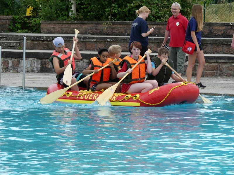Am Samstagvormittag lud Stadtjugendfeuerwehrwartin Christine Peter die Jugendfeuerwehren der Stadt Oschersleben, sowie die Kinderfeuerwehr in das Freibad der Stadt zum 1.Schlauchbootrennen.