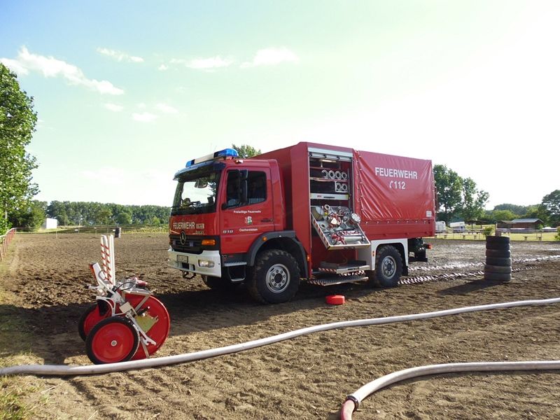 Am Dienstagabend wurden die Feuerwehren Oschersleben und Hordorf um kurz nach 18.00 Uhr zu einer Einsatzübung auf dem Reiterhof Behrens alarmiert.