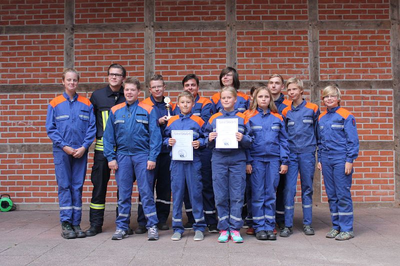 Im Namen aller Teilnehmer sprach JFW Sina Liebzeit Dankesworte an die Organisatoren Christine Peter (Verbandsjugendfeuerwehrwartin), Vivien Heine (stellv. Verbandsjugendfeuerwehrwartin), Marko Zimmermann (Geschäftsführer Feuerwehrverband Börde e.V.) und Carola Schneider (Gemeindejugendfeuerwehrwartin Sülzetal) aus.