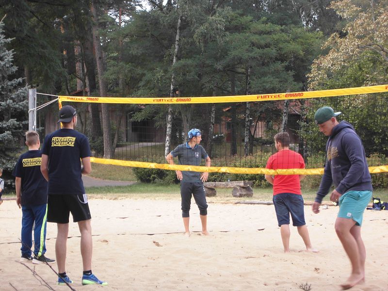 Am ersten Morgen haben 20 Mannschaften an dem Spaßwettkampf teilgenommen. Dieser Wettkampf beinhaltete 16 Stationen. Dort wurden Sportlichkeit, wie 11-Meter Schießen und Weitsprung, aber auch Feuerwehrtechnische Kenntnisse, wie Schlauch rollen, Erste Hilfe und Wissen an einer Fragenstation gefordert. Auch die Gäste der Stadt Oschersleben (Bode) Benjamin Kanngießer, Bürgermeister, sowie Ordnungsamtsleiter Gerd Ludwig und Stadtwehrleiter Sven Könnecke verfolgten gespannt den Spaßwettkampf und erkundeten mit Frau Spöttle das Lager.