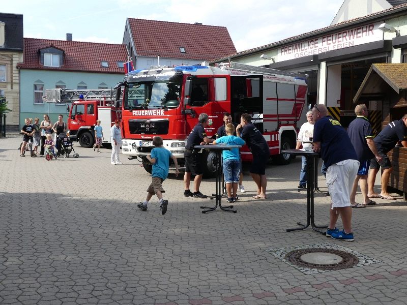 Fördervereinsvorsitzender Andreas Nist und Ortswehrleiter Carsten Loof konnten Bürgermeister Benjamin Kanngießer, Ordnungsamtsleiter Gerd Ludwig, Feuerwehrverbandsvorsitzenden Ulf Nohr, Martin Krovina vom THW Ortsverband Oschersleben, sowie die Jugendfeuerwehr Schermcke als Gäste begrüßen. 1961 wurde in Oschersleben eine Arbeitsgemeinschaft "Junge Brandschutzhelfer" gegründet. Kinder ab einem Alter von 10 Jahren wurden dort vorwiegend zum Thema, vorbeugenden Brandschutz ausgebildet.