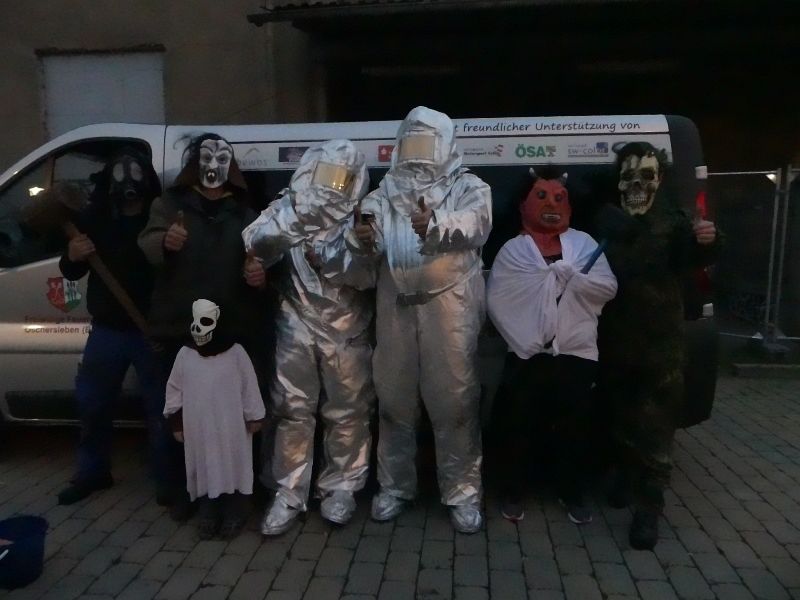 Die beiden Jugendfeuerwehrwarte, Thomas Ehrhardt und David Noack, gestalteten mit einigen Aktiven Kameradinnen und Kameraden das alte Bahnhofsgebäude zu einem wahren Horrorhaus um. Nach einem schaurig süßen Begrüßungsgetränk, ging es in das Horrorgebäude. Die Kinder wurden von Nebel, schauriger Musik, Dunkelheit und schaurig aussehenden Gestalten empfangen. Sie mussten den sicheren Ausgang auf der anderen Seite selber erreichen und wurden dabei mehr als einmal erschreckt. Am Ende aber schafften alle den Weg zurück und waren sich einig „das war heftig“. Traditionell zogen dann die Kinder von Haustür zu Haustür, um reichlich Beute an Süßigkeiten zu machen. Zum Abschluss stand dann noch ein Fussballspiel auf dem Programm. Jugendfeuerwehr gegen Aktive hieß es in der Sporthalle. Die Jugendfeuerwehr hatte hier die Nase vorn. Ganz herzlich möchten wir uns bei der Wohnungsgesellschaft BEWOS, für die Bereitstellung des Bahnhofsgebäudes bedanken.