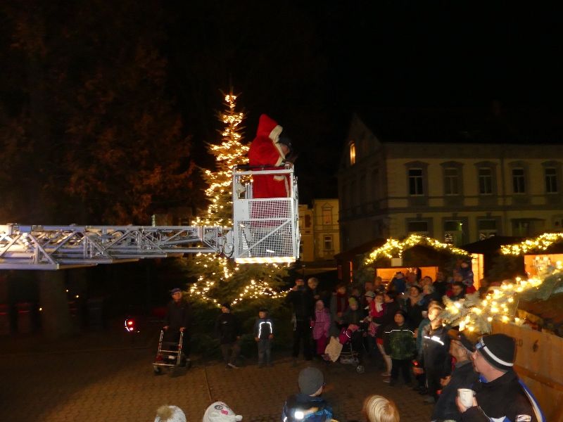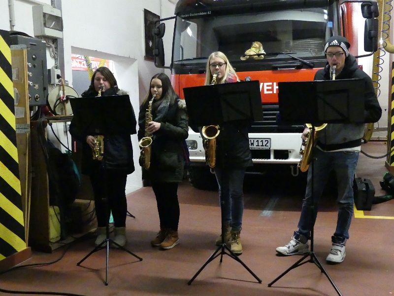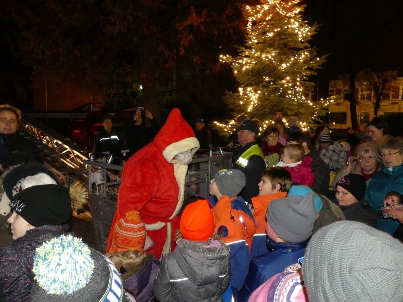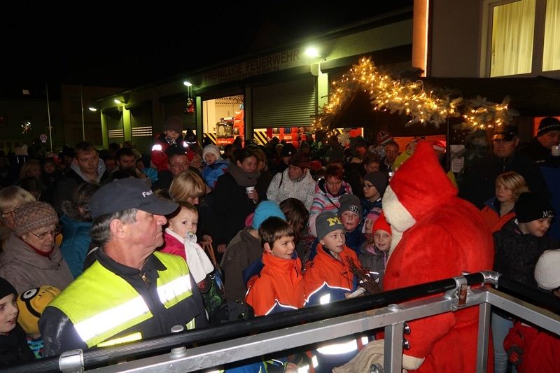 Feuerwehrfördervereinsvorsitzender Andreas Nist zeigte sich sehr erfreut über die vielen Besucher. Mit viel Spannung erwarteten die kleinen Besucher den Auftritt des Weihnachtsmannes. Dieser kam im Korb der Drehleiter angeschwebt. Dicht bedrängt von den vielen Kindern verteilte er allerlei Leckereien. Für die musikalische Umrahmung sorgte in diesem Jahr ein Bläserquartett vom Blasorchester Oschersleben. Auch die große Feuerwehrhüpfburg wurde von den Kindern wieder dicht umlagert. Viele nutzten auch die Möglichkeit um eine Runde mit einer Pferdekutsche zu drehen.