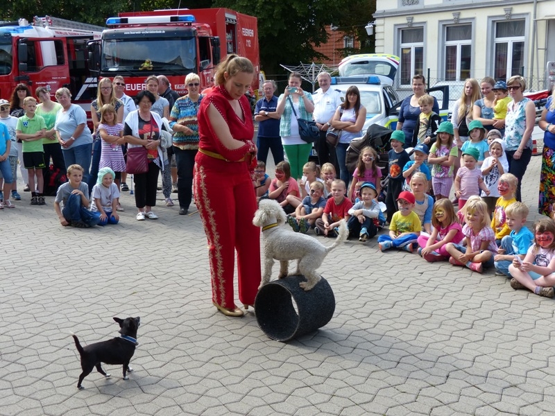 Die Hundeshow vom Zirkuserlebnisdorf Probst aus Staßfurt war sicherlich der Höhepunkt des diesjährigen Ferienspaßes bei der Feuerwehr Oschersleben.