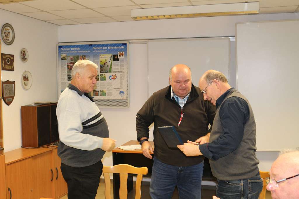Anschließend nutze Ulf Nohr die Aufmerksamkeit um den Fachbereichleiter der Alters und Ehrenabteilung, Lother Rosenberg für die Arbeit im Verband zu ehren und Frauensprecherin Andrea Rettschlag nachträglich zum Geburtstag zu gratulieren.