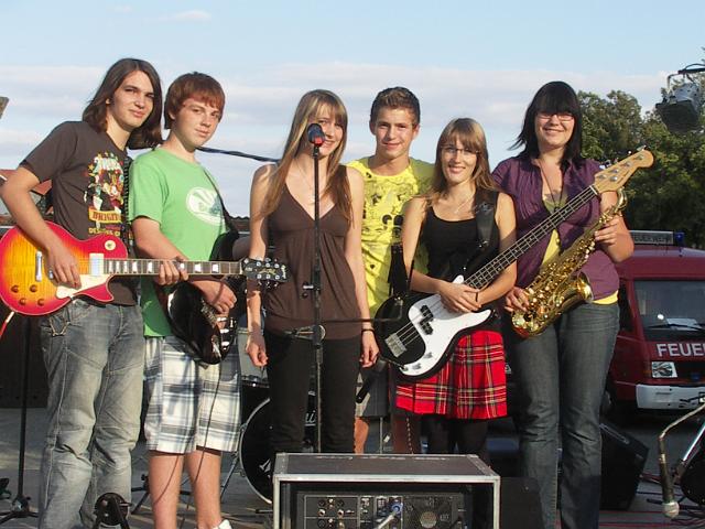 Dann ging es auch schon los, eine junge Nachwuchsband, "Kopfüber" aus Oschersleben, zeigte erstmals vor größerem Publikum ihr Können, gut eine Stunde spielten sie eigene und bekannte Songs - prima gemacht, so die einheitliche Meinung der Besucher.