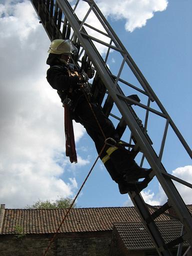 Danach ging es überwiegend praktisch darum, sich in einem absturzgefährdeten Bereich zu bewegen. Die Teilnehmer lernten verschiedene Varianten und Techniken kennen und hatten ausreichend Gelegenheit diese auszuprobieren. Dabei verschwanden sehr schnell die skeptischen Gesichter und die jungen Feuerwehrangehörigen fassten Vertrauen in ihre Ausrüstung.
