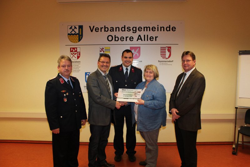 Der Verbandsgemeindebürgermeister Frank Frenkel dankte den Vertretern der Versicherung bei der Übergabe für die finanzielle Unterstützung. Gemeinsam mit der Gemeindewehrleitung entschied man sich, die Wärmebildkamera in Hötensleben zu stationieren, da die Feuerwehr Hötensleben einen großen Bereich abzusichern hat und die Notwendigkeit diese  Technik vorzuhalten gegeben ist.