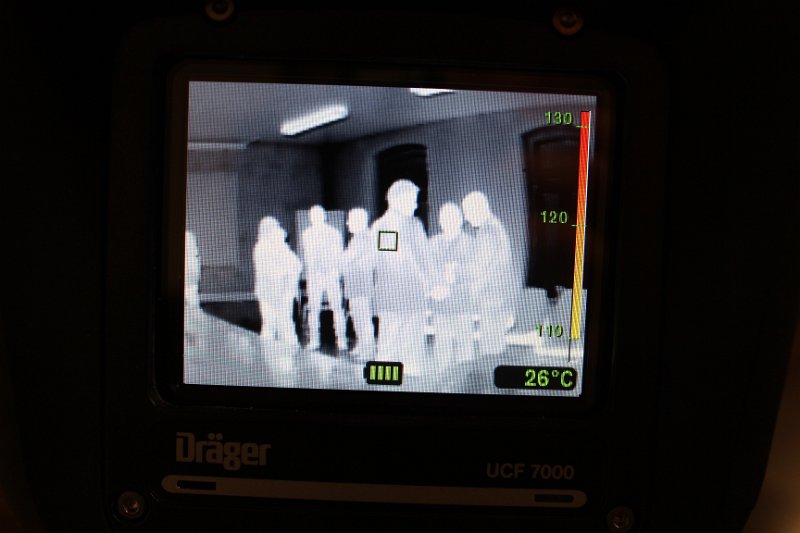 Mit einer Wärmebildkamera, die mit Infrarotstrahlung arbeitet, können die Einsatzkräfte der Feuerwehr zuverlässig Personen auch in verqualmten Gebäuden oder bei Dunkelheit entdecken. Außerdem spürt die Kamera gefährliche Glutnester auf.