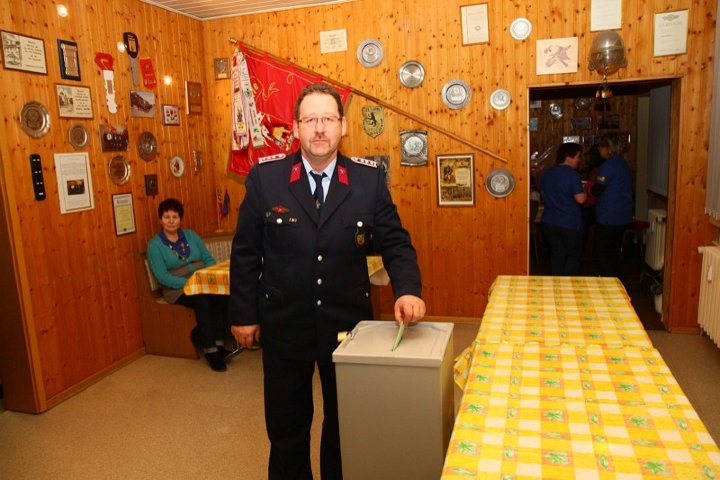 32 von 38 aktiven Kameraden waren zur Wahl anwesend. Bürgermeister Dieter Klenke, Ordnungsamtsleiter Gerd Ludwig und Carina Lomott bildeten den Wahlvorstand. Nach einigen einleitenden Worten zum Wahlprozedere schritten die Kameraden zur geheimen Wahl.