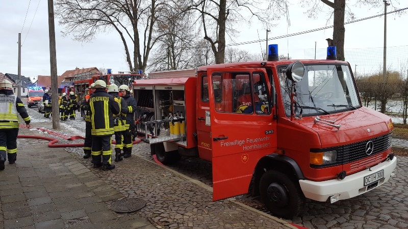 Beim Eintreffen der Feuerwehr drang dichter Rauch aus dem Fenstern eines Mehrparteienhauses. Ein Trupp unter Atemschutz ging sofort zur Erkundung in die verqualmte Wohnung vor. Der Schwelbrand in der Küche, war bereits erloschen. Kurz nach der Hornhäuser Feuerwehr, traf die Verstärkung aus Oschersleben ein. Ein weiterer Trupp ging mit einer Wärmebildkamera vor, um eventuell vorhandene Glutnester ausfindig machen zu können. Das Gebäude wurde im Anschluss durchgelüftet. Die Wohnungsmieterin wurde verletzt. Ein Rettungswagen brachte sie ins Krankenhaus. Neben der Feuerwehr und dem Rettungsdienst, war auch die Polizei vor Ort. Zur Brandursache ermittelt die Polizei. Nach rund einer Stunde war der Einsatz beendet.
