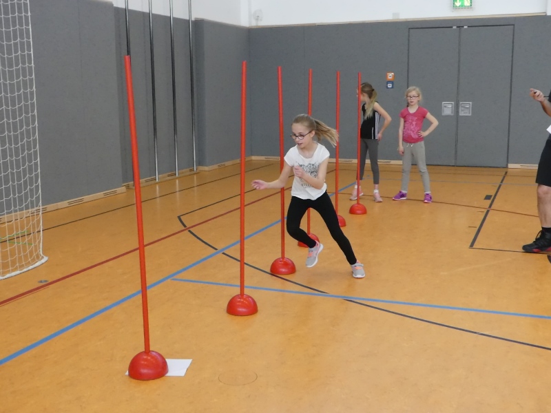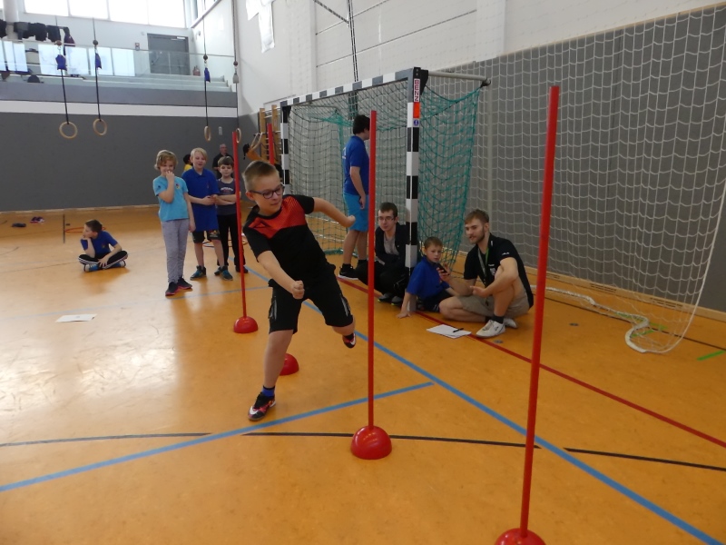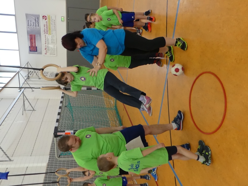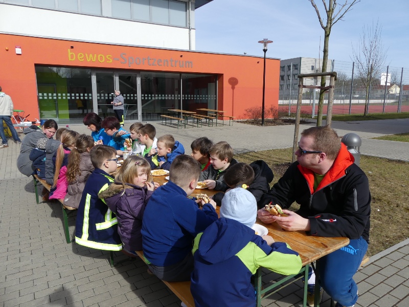 Ein volles Programm wartete auf die jungen Sportler, denn 19 Stationen galt es zu bewältigen. So mussten sich die 7 Teams u.a. in Basketballkorb treffen, Seilspringen, Kletterstange, Dreier Hopp, 100 Meter Lauf, Slalomlauf, Klimmzüge und Hochsprung messen. Die Kameraden aus Hornhausen kamen mit dem Verpflegungsanhänger und versorgten die Kinder zum Mittag, mit Pommes und Burger.