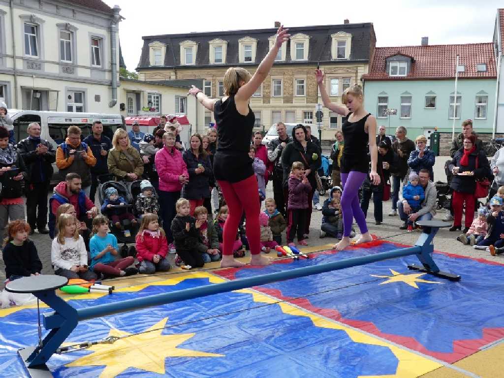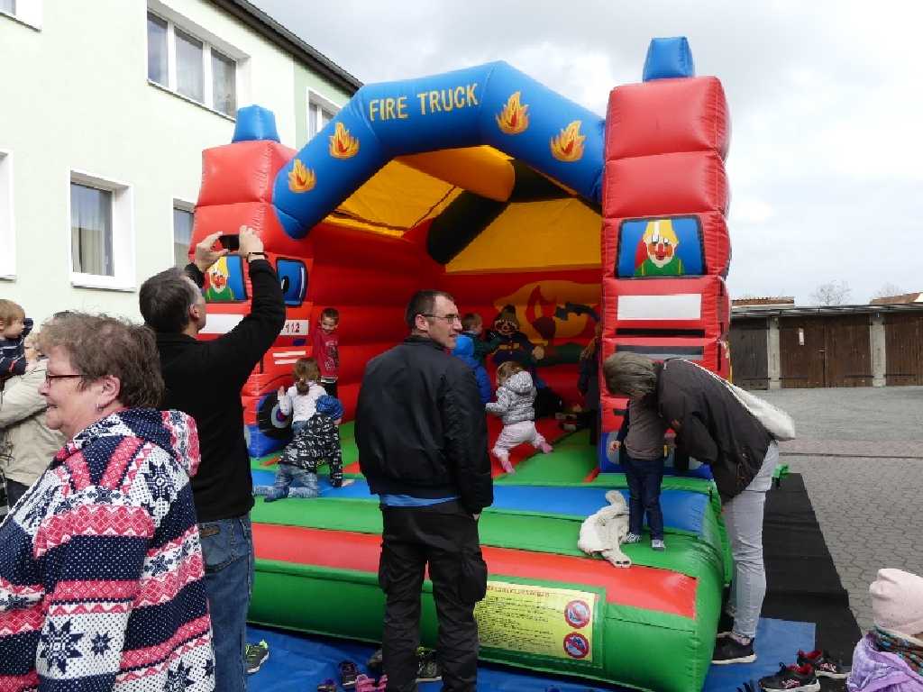 Gleich zu Beginn, gingen die Kleinen auf Suche nach dem Osterhasen. So wurde das ganze Feuerwehrgelände durchstöbert, gefunden wurde er dann schlafend in einem Feuerwehrfahrzeug. Aber die Kinder weckten ihn und er hatte auch vollgepackte Osterkörbe dabei und verteilte kleine Leckereien. Danach tobten sich viele der kleinen Besucher auf einer Hüpfburg aus. Die Erwachsenen ließen sich Kaffee und Kuchen schmecken. Viele Familien bemalten dann Ostereier bunt an und hatten viel Spaß dabei. Mitarbeiter des Oschersleber  Wiesenparks,  bauten einen kleinen Streichelzoo mit Kaninchen und Meerschweinchen auf, was besonders die ganz Kleinen freute. Dann wurde es aber Zeit für die Awolinos. Die bekannte Oschersleber Zirkustruppe zeigte ihr Können auf dem Drahtseil und beim Jonglieren. Eine tolle Vorführung, wofür sich Feuerwehrfördervereinsvorsitzender Andreas Nist, noch einmal recht herzlich, bei den Awolinos bedanken möchte. Jugendfeuerwehrwart und Organisator Thomas Ehrhardt bedankte sich ebenfalls bei den Awolinos, sowie auch bei der Stadtverwaltung für die Unterstützung. Mit dem Erlös des Kuchenbasars, wird die Jugendfeuerwehr Oschersleben demnächst eine Tierpatenschaft im Wiesenpark übernehmen