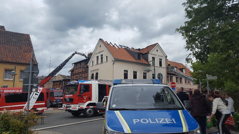 Auch die Versorgungsgruppe aus Hornhausen wurde alarmiert und kam zum Einsatz. Eine am Fenster gesichtete Katze, konnte über eine Steckleiter gerettet werden und wurde einem Tierarzt zugeführt. Über die Drehleitern musste das komplette Dach geöffnet werden, um an die Glutnester zu kommen. Die Nachlöscharbeiten an dem Fachwerkhaus gestalteten sich schwierig und kräftezerrend. Am Nachmittag konnten die ersten Kräfte aus dem Einsatz entlassen werden. Die Oschersleber Feuerwehr blieb vor Ort und führte weiterhin Nachlöscharbeiten durch.