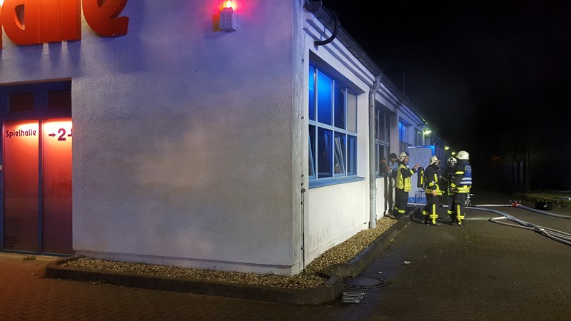 Während der Erkundung wurde Feuerschein aus einem Fenster neben dem Eingangsbereich gesichtet. Umgehend wurde die Brandbekämpfung eingeleitet. Die Einsatzkräfte der Feuerwehr mussten sich mit Werkzeug, Zugang in den Brandraum verschaffen. Der Brand konnte zügig gelöscht werden. Die Hitze und Raucheinwirkung richtete erheblichen Schaden an und drang auch bis in den Restpostenmarkt ein. Das Gebäude wurde von der Feuerwehr belüftet.