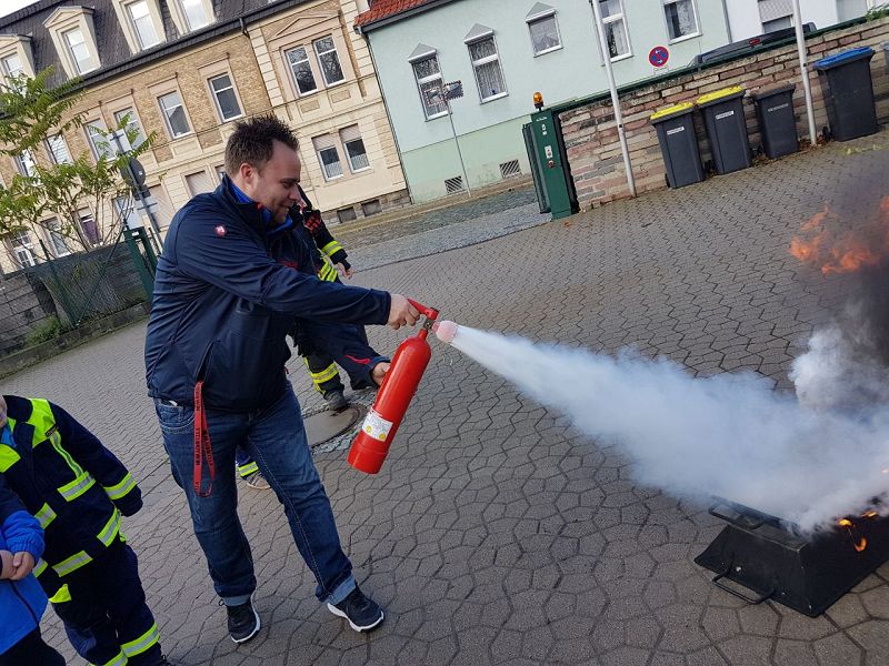 Bodelöschis üben mit Feuerlöschern