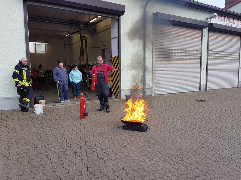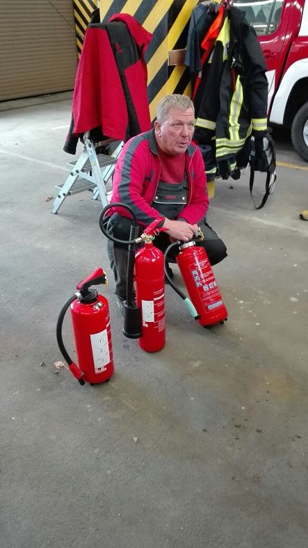 Diesmal war Brandschutztechniker Thomas Dahms zu Gast. So stellte er den Kindern die verschiedenen Brandklassen und die dazugehörigen Feuerlöscher vor. Nach der theoretischen Ausbildung ging es dann auf den Hof. Hier entzündet Thomas Dahms das Feuer in einer Trümmerwanne und zeigte den Kindern, wie man so einen Brand mit einem Feuerlöscher richtig löscht. Natürlich mussten dann auch die Kinderfeuerwehrbetreuer ihr Können unter Beweis stellen.