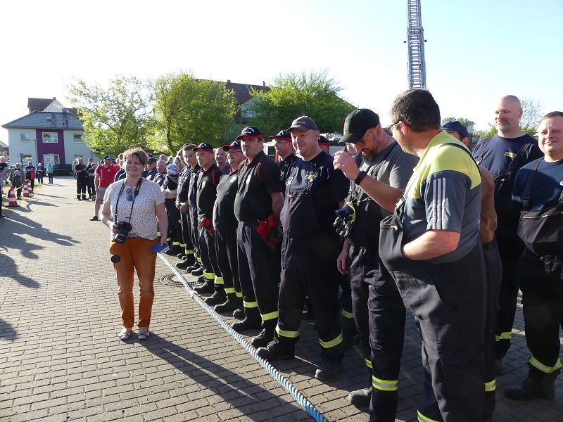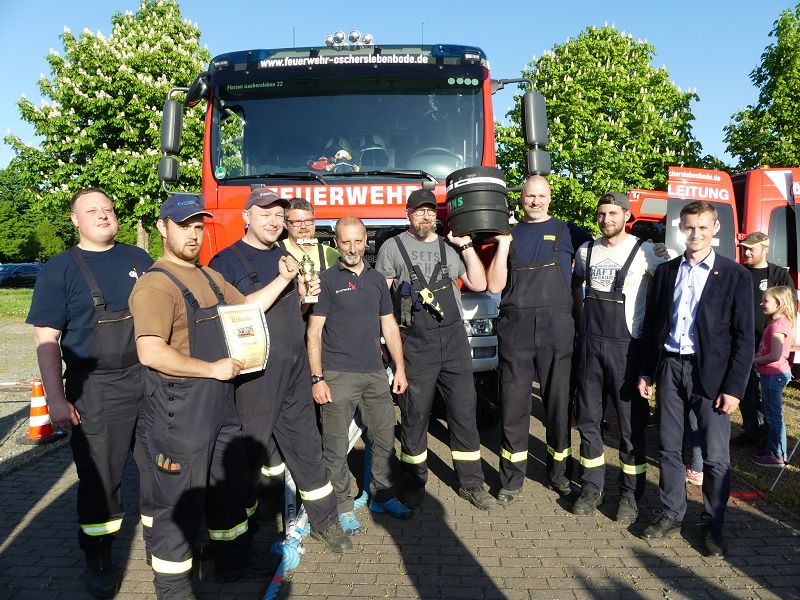 Alle Teams erhielten eine Urkunde als Erinnerung an diese Veranstaltung. Der vom Orstwehrleiter Carsten Loof gestiftete Wanderpokal, ging aber nach Schermcke, ebenso wie ein 30 Liter Bierfass, gespendet von Bürgermeister Benjamin Kanngießer. Durch den Wettkampf führte wortgeschwind Matthias Germer von der Oschersleber Feuerwehr. Feuerwehrfördervereinsvorsitzender Andreas Nist, bedankte sich auch recht herzlich bei allen Teams, bei allen Helferinnen und Helfern und natürlich bei den vielen Besuchern des Tanker Pulling und des Maifeuers. Ebenso geht ein Dank an den VFB Oschersleben, welcher in Kooperation mit dem Feuerwehrförderverein ein Maifest mit Fußballturnier, Hüpfburg und Kinderkarussell veranstaltete.