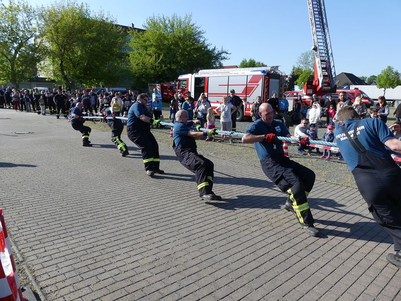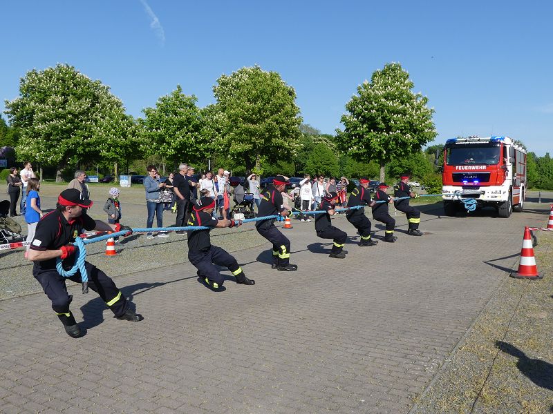 Das eigentliche Highlight war aber, dass zum ersten Mal durchgeführte Tanker-Pulling. Hierbei galt es das Tanklöschfahrzeug, mit einem Gesamtgewicht von 18 Tonnen, über eine Distanz von 25 Metern zu ziehen.