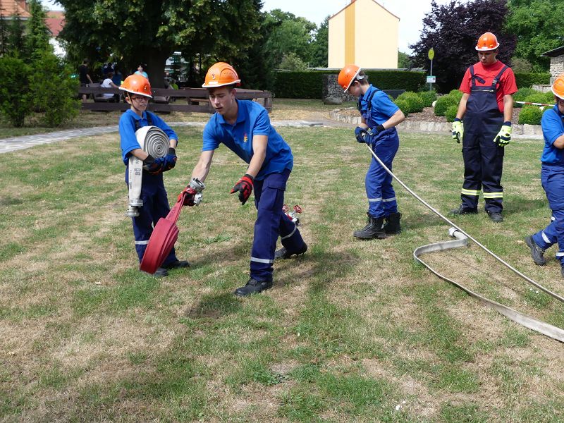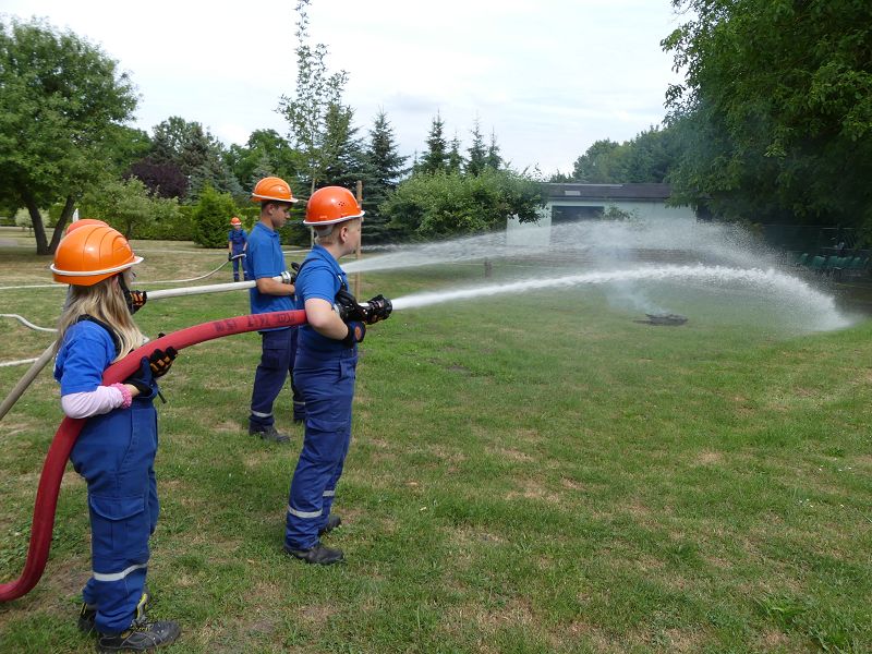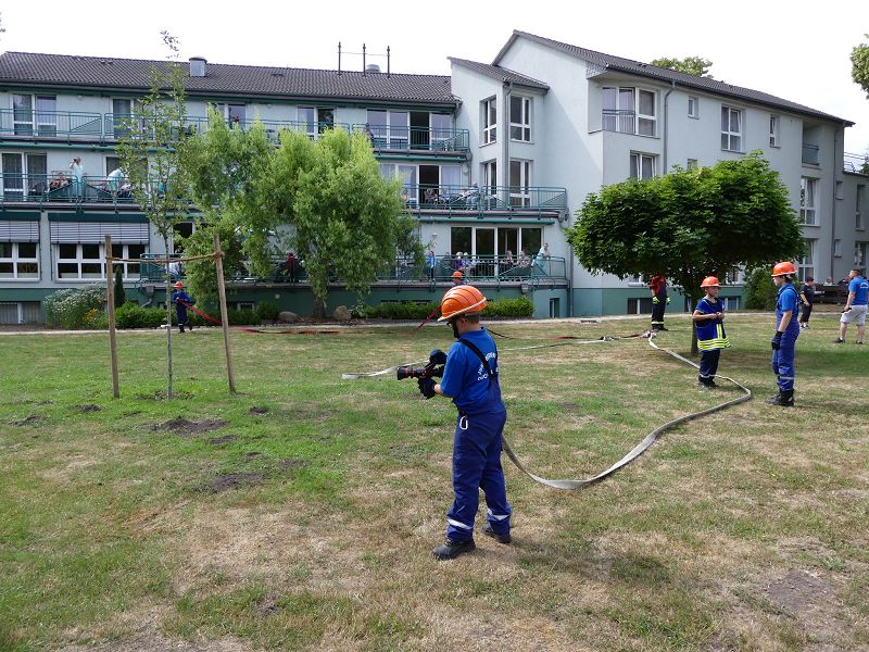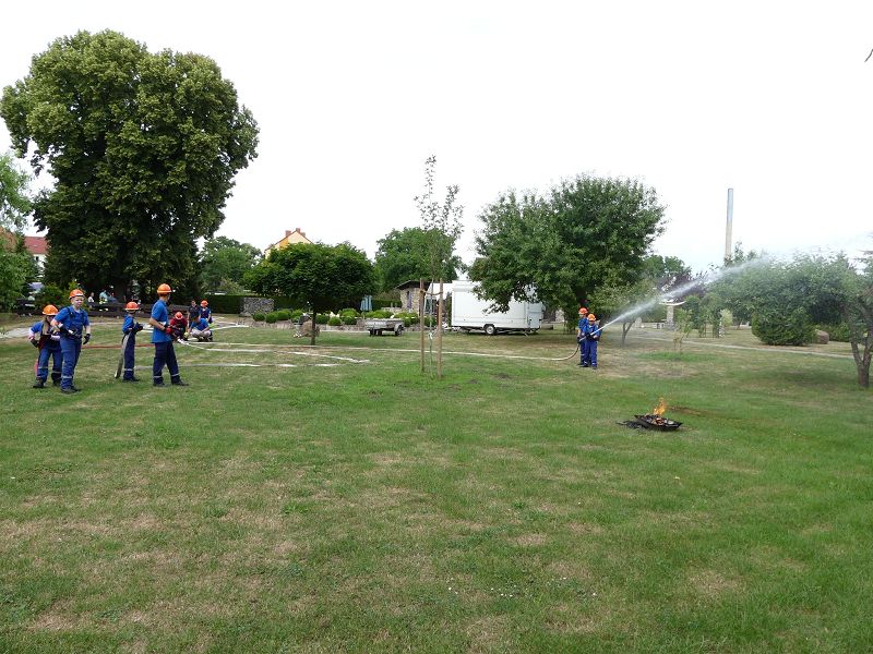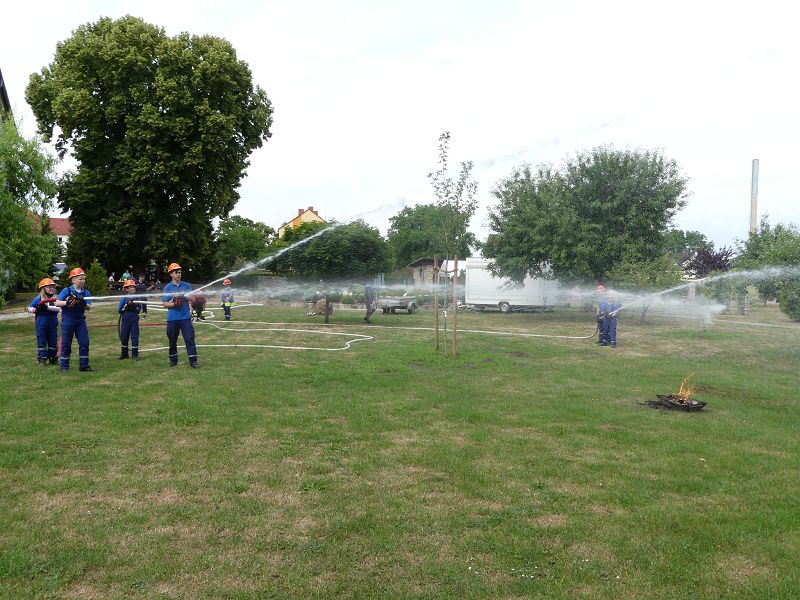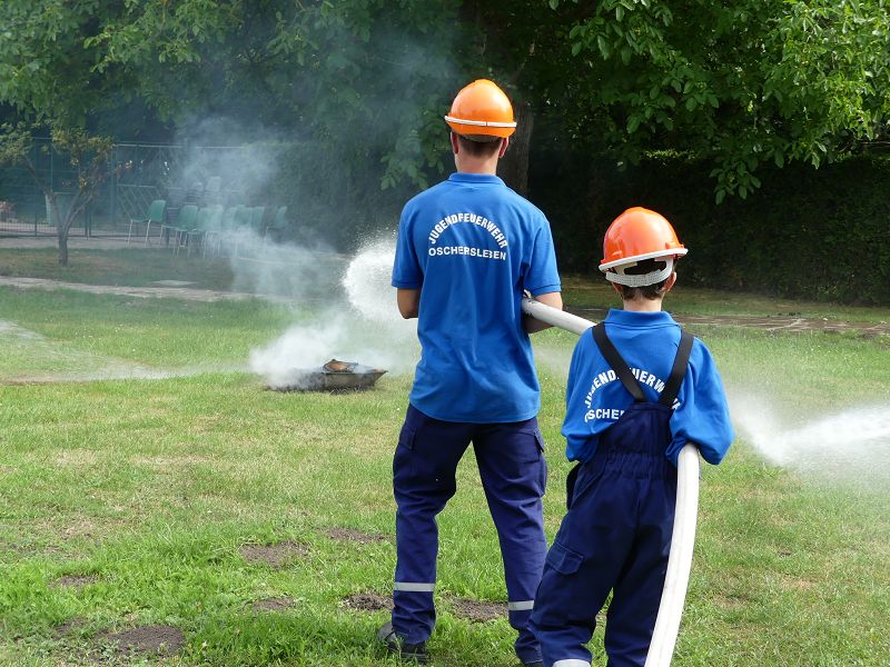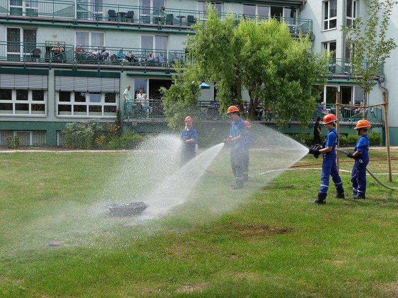 Die Bewohner hatten bereits im letzten Jahr die Jugendfeuerwehr Oschersleben, um Jugendfeuerwehrwart David Noack zu Gast und so wurden die jungen Brandschützer auch in diesem Jahr wieder eingeladen. So führten die Mädchen und Jungen einen Löschangriff vor. Schnell waren die Schläuche ausgerollt und das Wasser aus dem Tanklöschfahrzeug in die „Flammen“ gespritzt. Die Bewohner waren vom Können der jungen Brandschützer begeistert. Nach getaner Arbeit, gab es dann aus der Küche für alle Würstchen und Getränke, die sich natürlich die Kinder haben schmecken lassen.