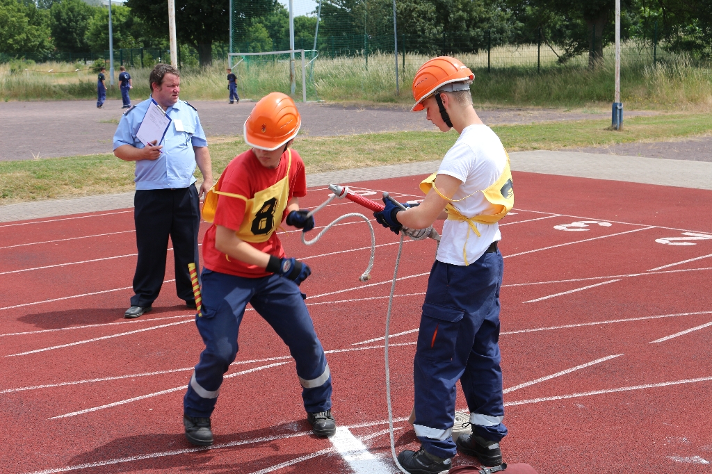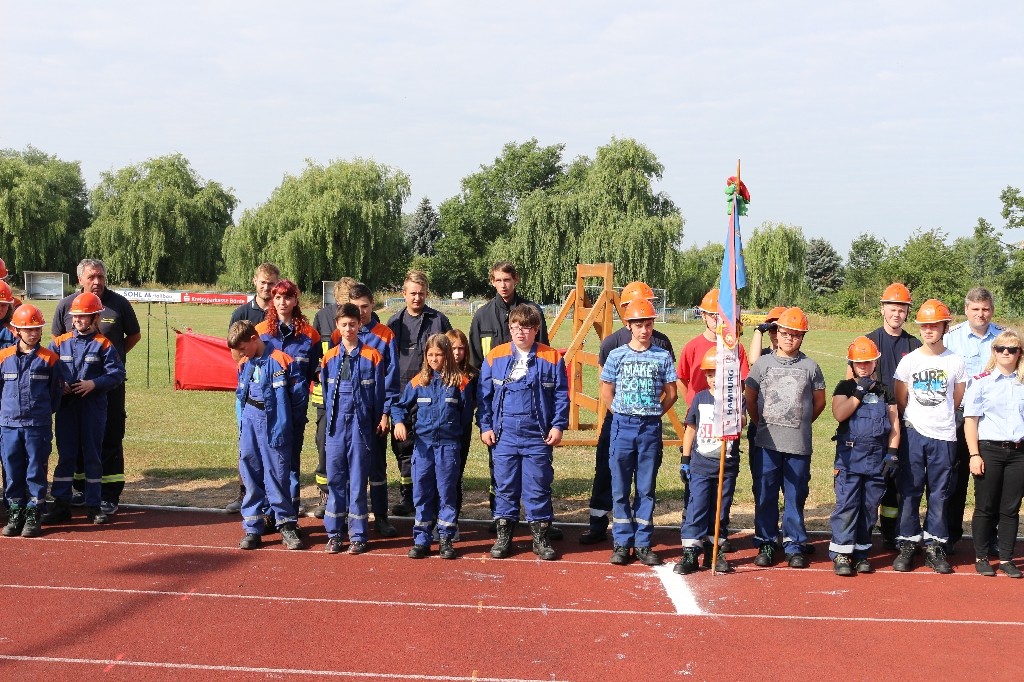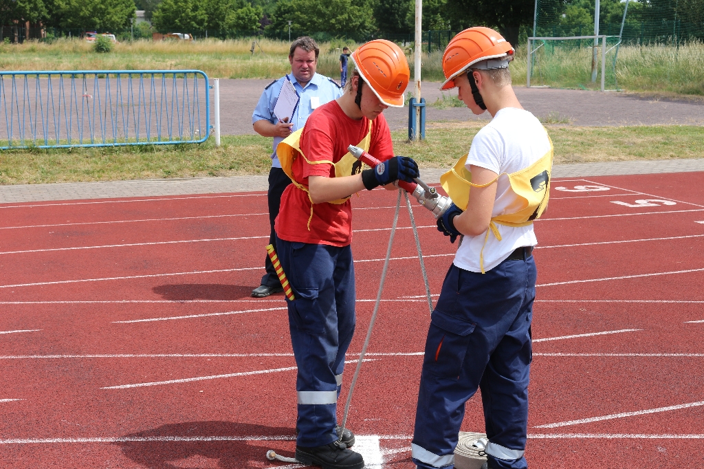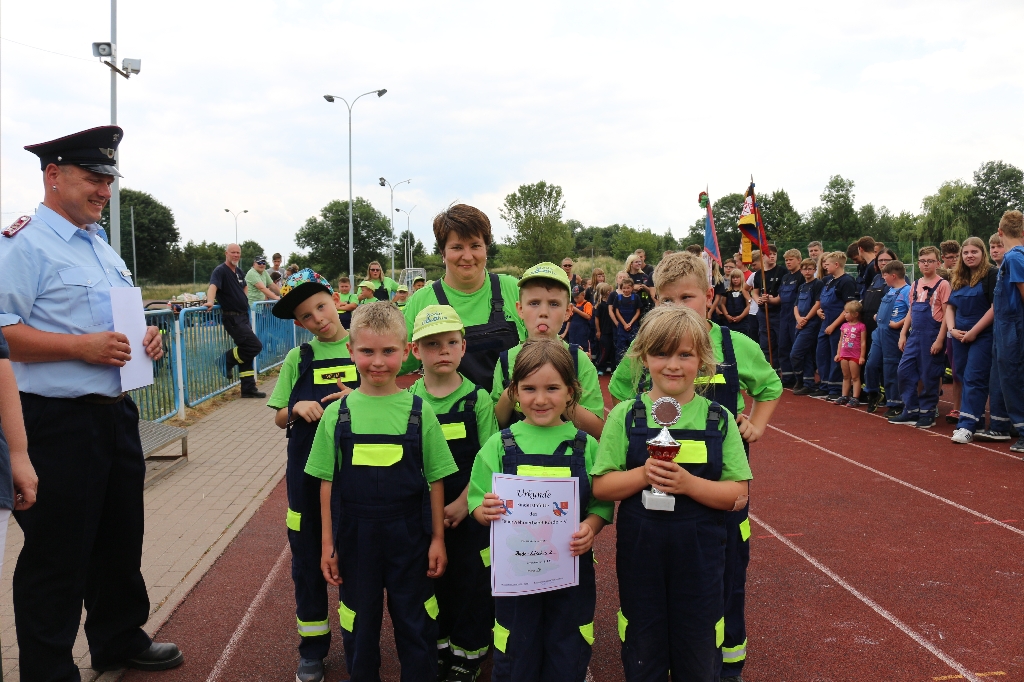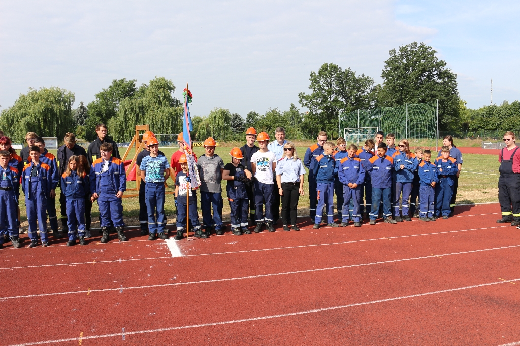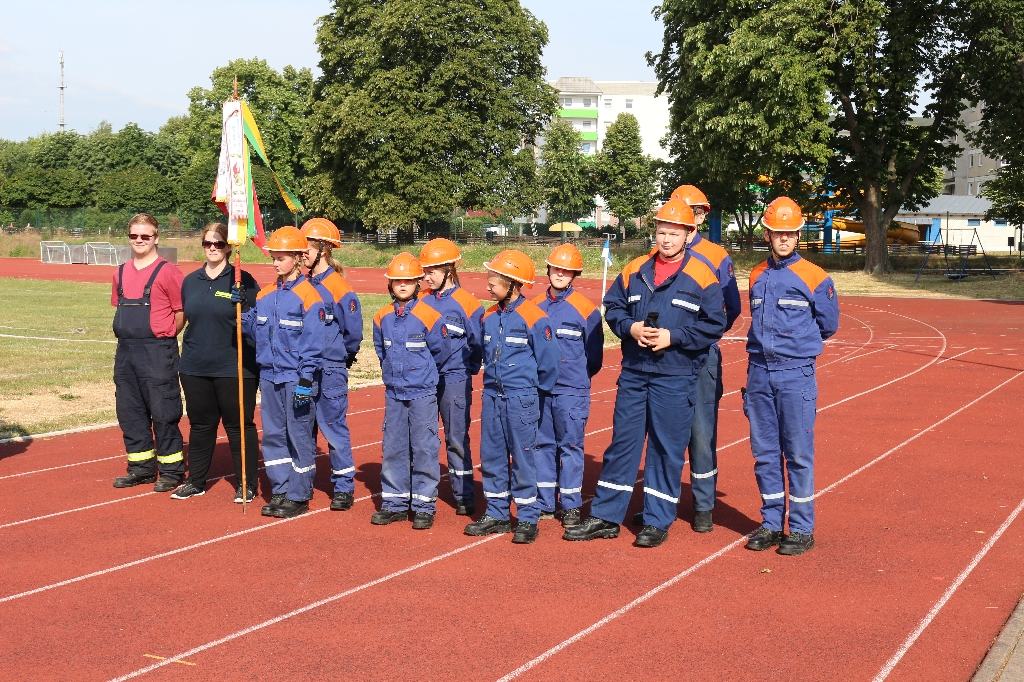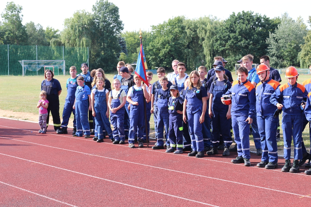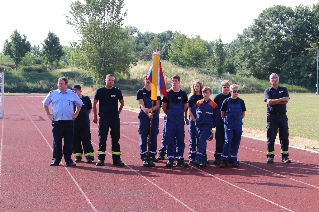 Um ca. 09:00 Uhr begrüßte Fachbereichleiter Sandro Schröder alle anwesenden Kamerdinnen u. Kameraden sowie Gäste, unteranderem den Bürgermeister Thomas Klug und Verbandsjugendfeuerwehrwart Holger Kluge. Die Startreihenfolge wurde durch das Los entschieden, welches jedes Team ziehen mussten. So traten insgesamt acht Mannschaften zum Bundeswettbewerb der Jugendfeuerwehr und vier Manschaften zur erstmals durchgeführten Kindergruppenstafette an.
