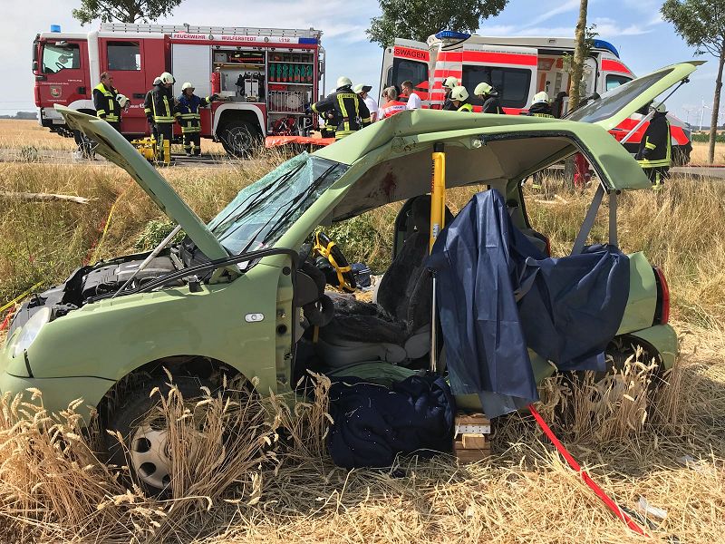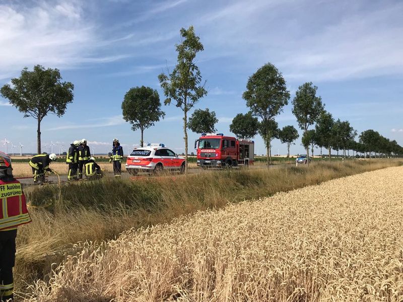 Gegen 10.15 Uhr wurden die Feuerwehren in Wulferstedt, Hamersleben, Neuwegersleben und Oschersleben sowie Rettungskräfte des Malteser Hilfsdienstes alarmiert. Während die Einsatzkräfte den Unfallort absicherten, leitete ein Notarzt die medizinische Rettung ein. Zudem musste die Frau von den Feuerwehrmännern und schweren Gerät aus ihrem Auto befreit werden. Anschließend wurde sie von einem Rettungshubschrauber in ein Krankenhaus nach Magdeburg-Olvenstedt geflogen. Die Kreisstraße musste für mehrere Stunden voll gesperrt werden. Es kam zu Verkehrsbehinderungen. Die Ermittlungen zum Unfallhergang dauern an.