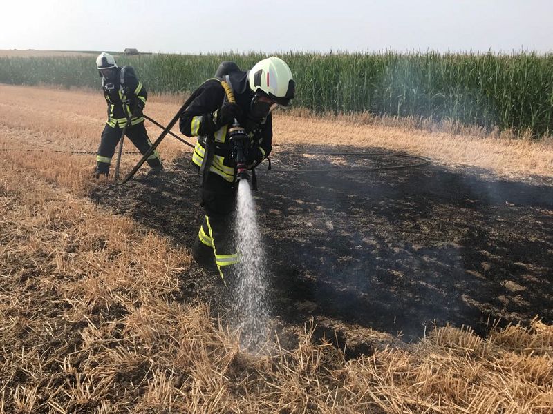 So ging es gegen 15.00 Uhr zu einem Stoppelackerbrand, zwischen Oschersleben und Hordorf. Hier brannte eine Fläche von ca. 1 Hektar. Gemeinsam mit den Kameraden aus Hordorf, sowie der Hilfe einiger Bauern mit ihren Wasserkaupen, konnte der Brand nach rund einer Stunde gelöscht werden. G