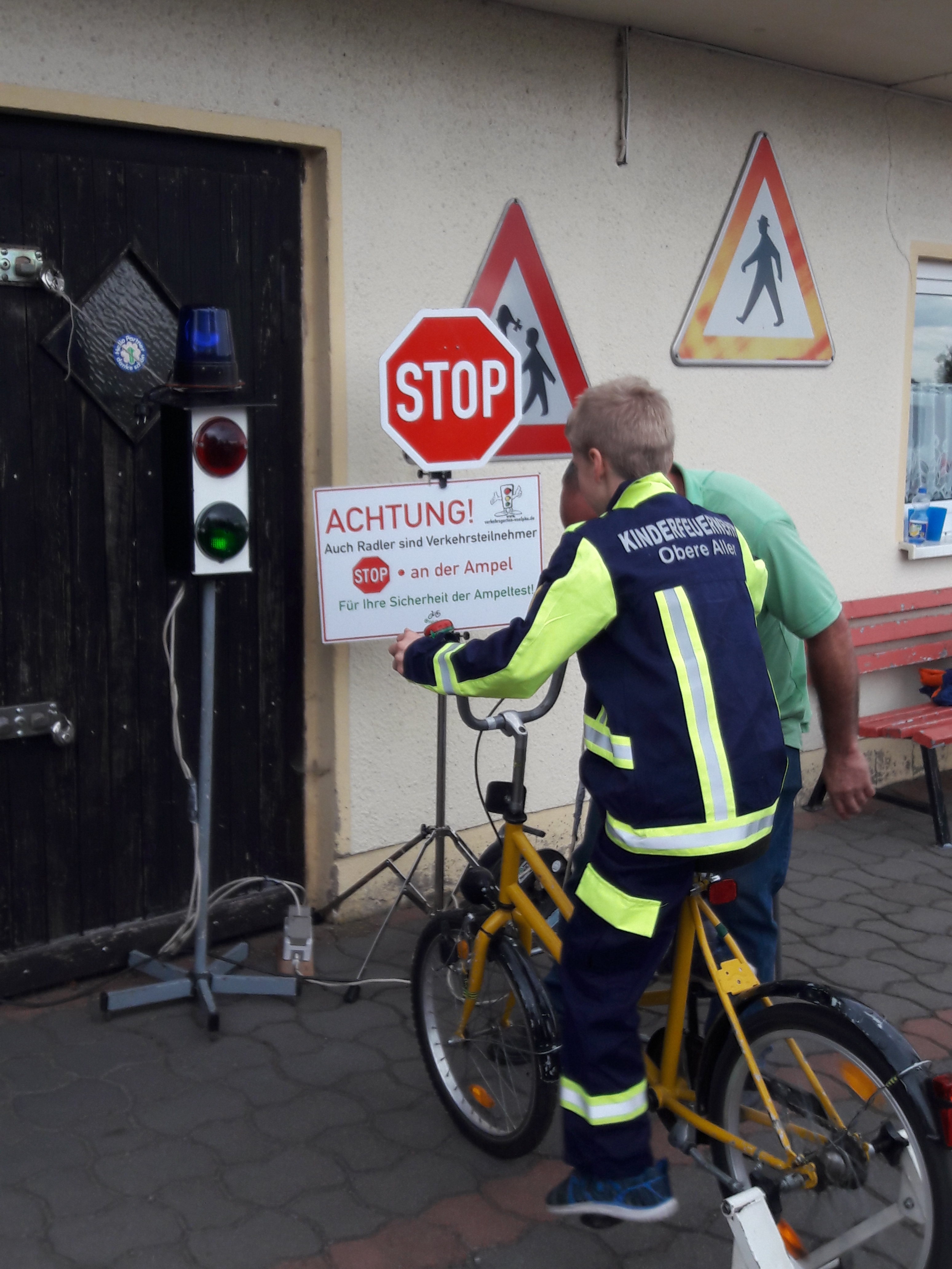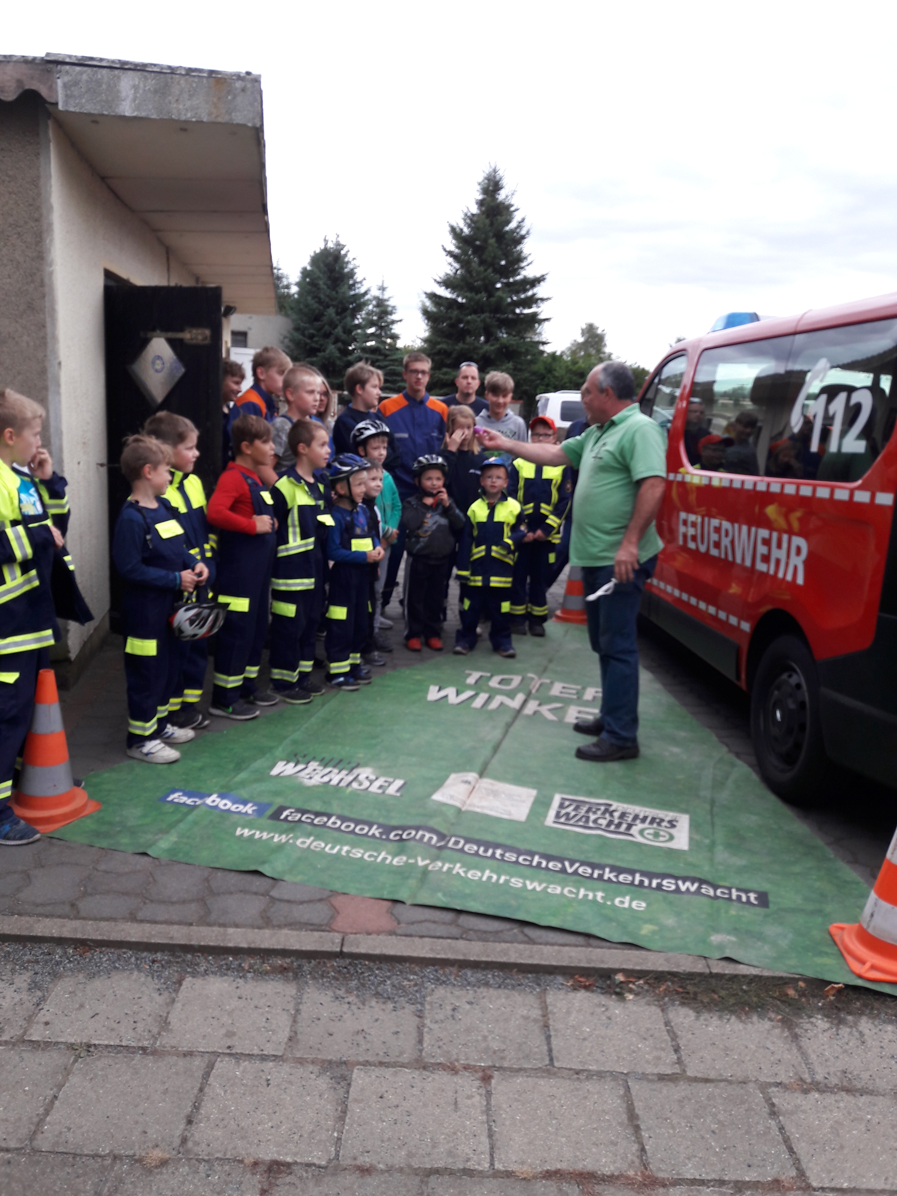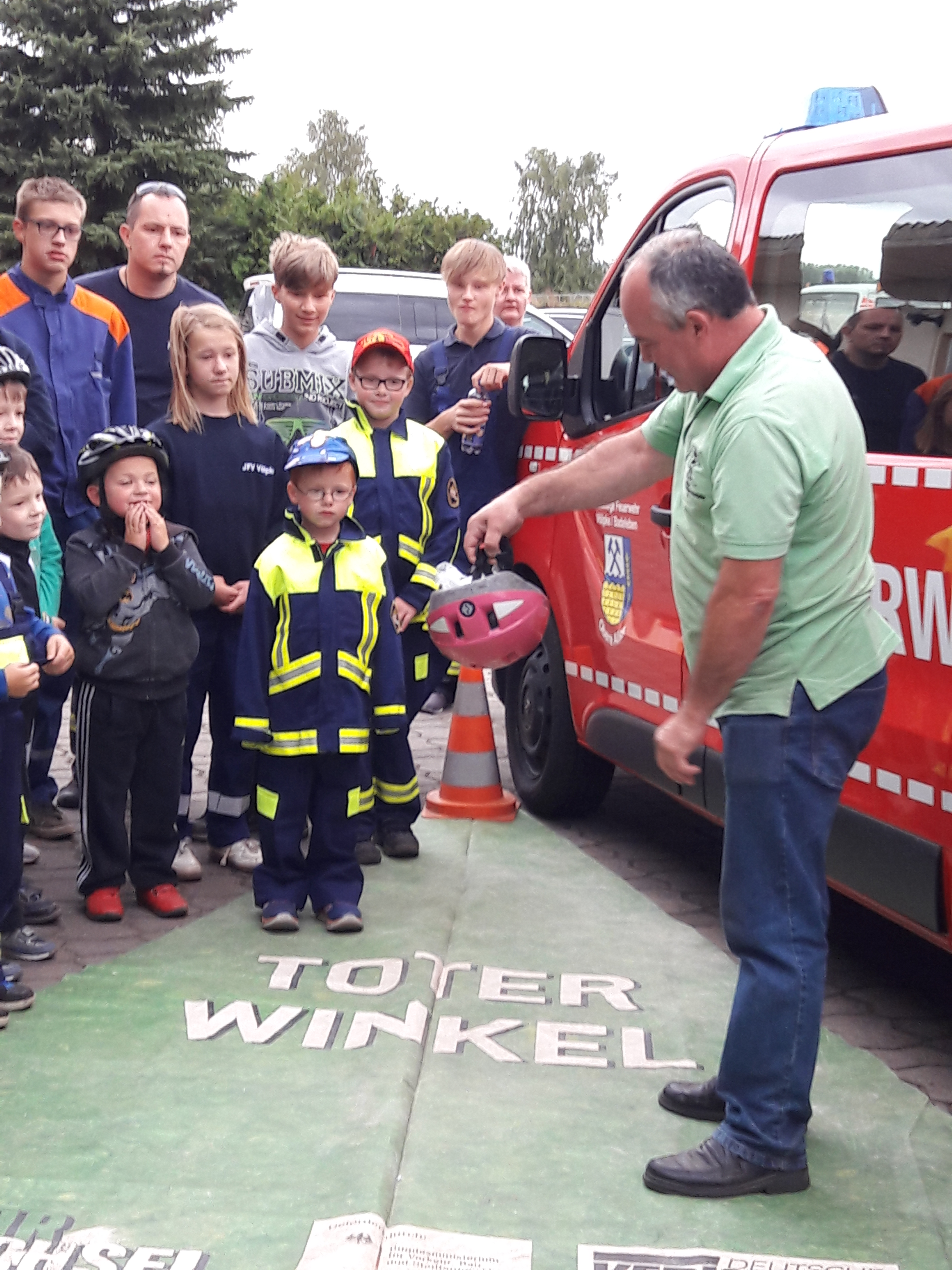Das Team vom Verkehrsgarten brachte auch viel Wissenswertes an die Kinder . Was ist ein toter Winkel? Warum ist ein Fahrradhelm wichtig? Bedeutung von Verkehrsschilder ( Gebot oder Verbotsschilder ) Wie verhalte ich mich richtig im Straßenverkehr. Alles wurde an Ort und Stelle erklärt und auch an realistischen Beispielen gezeigt. Zum Abschluß des Tages wurde von den Kameraden aus Völpke für alle gegrillt.