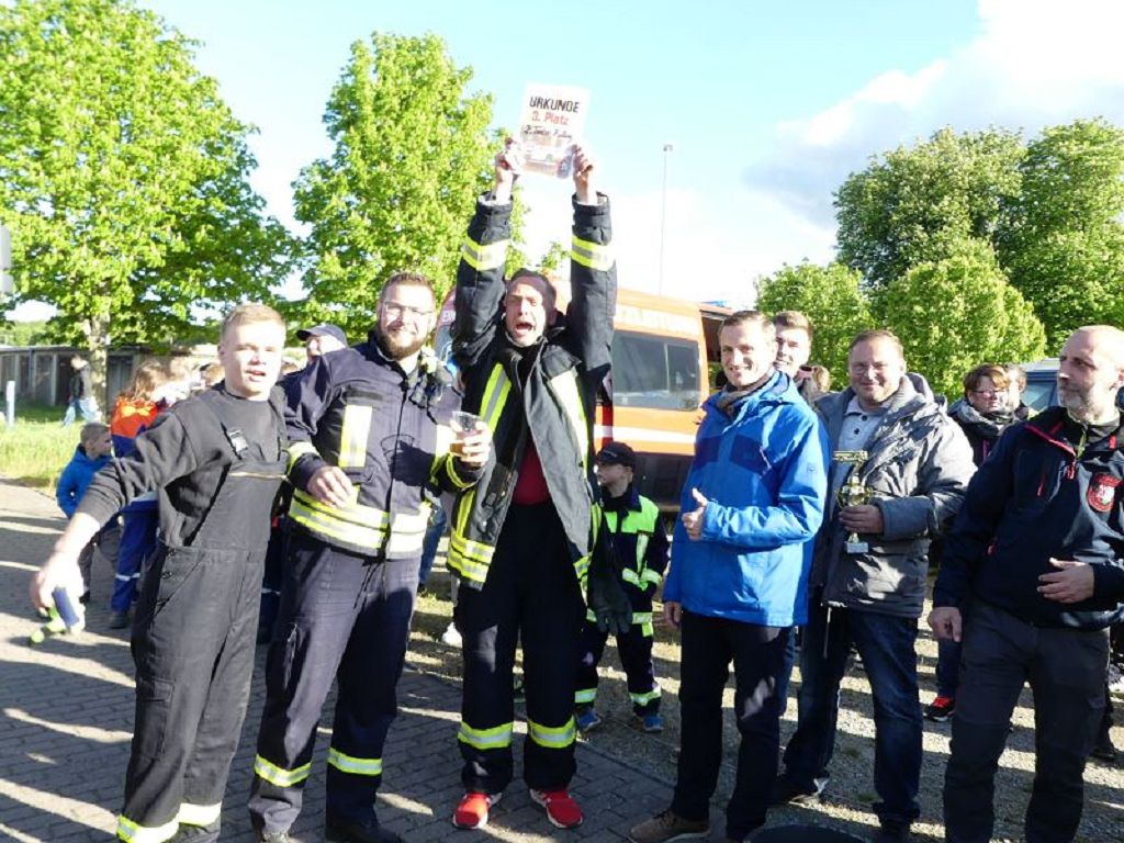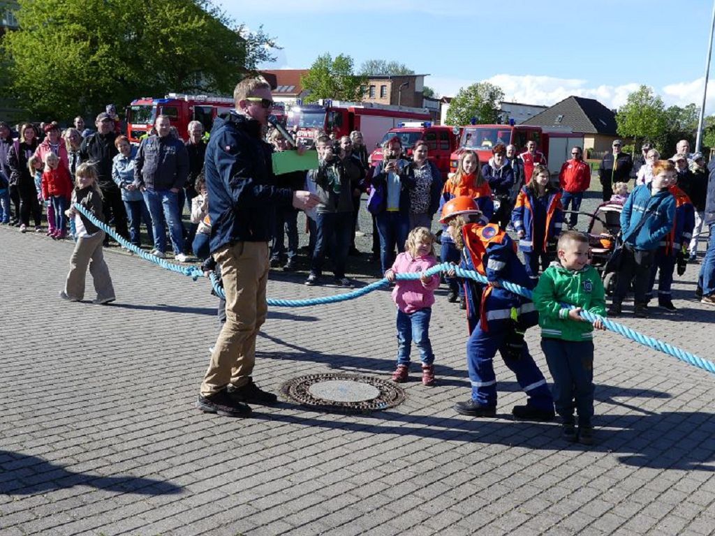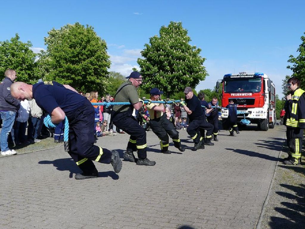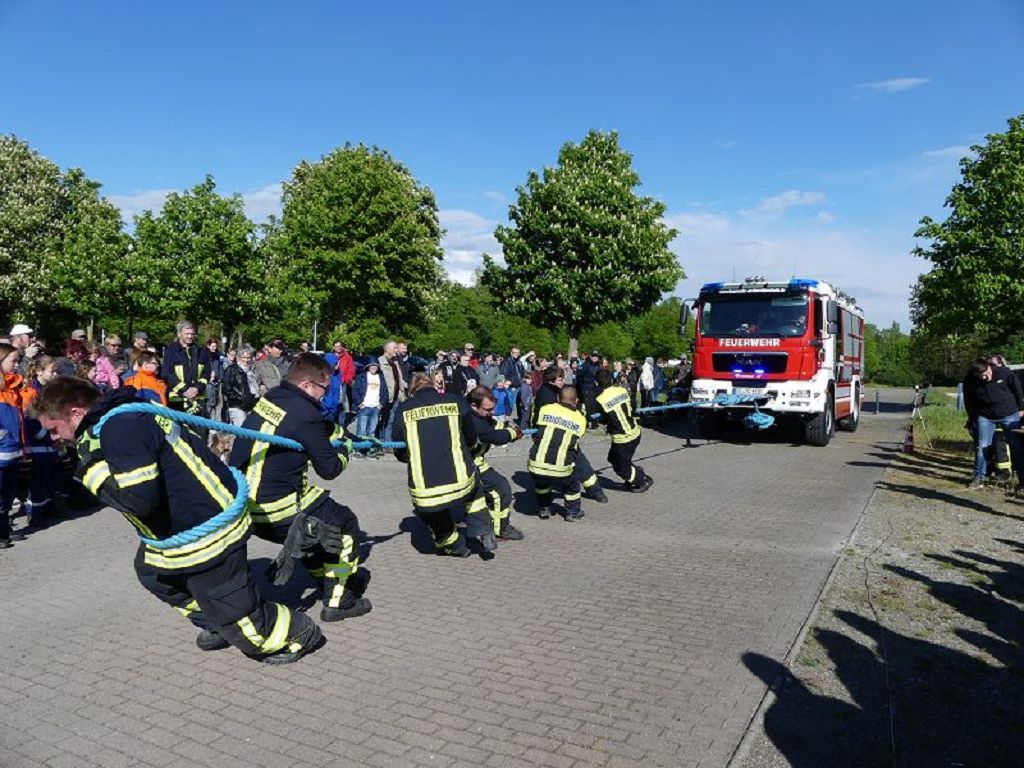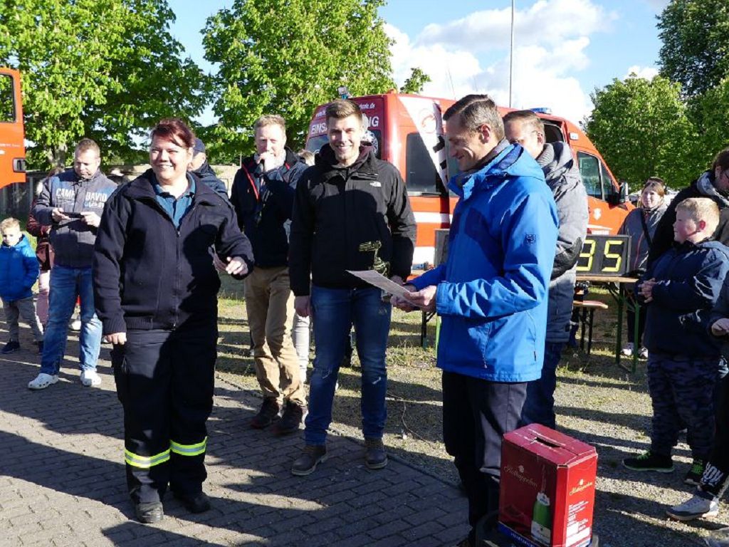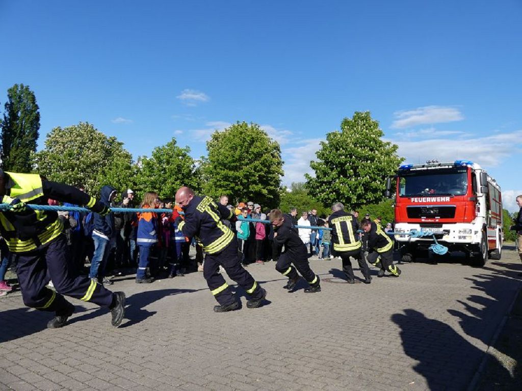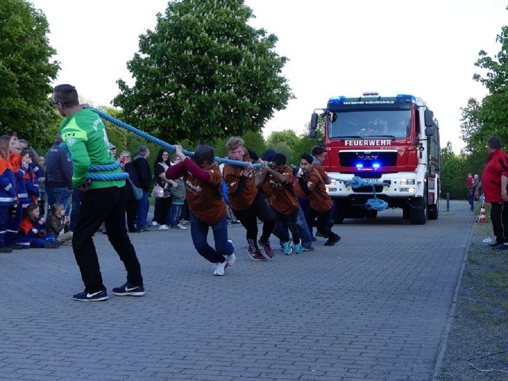 6 Mannschaften nahmen daran teil, darunter auch eine Frauenmannschaft. Auch diesmal galt es das 18 Tonnen schwere Tanklöschfahrzeug über eine Distanz von 25 Metern zu ziehen. Die Startfolge wurde ausgelost und so begannen als erstes die Lokalmatadoren aus Oschersleben. Mit einer Zeit von 15.87 sec., schafften sie auch gleich die Bestzeit im ersten Durchgang. Dicht gefolgt von den Ampfurther Kameraden, die das Fahrzeug in 16.12 sec. zogen. Die Sieger des letzten Jahres, die Feuerwehr Schermcke, kamen in 16.29 sec. ins Ziel. Aber auch die Hornhäuser Kameraden, sowie die Frauengruppe der Feuerwehr Neindorf und die Mannschaft des VFB Oschersleben schafften schnelle Zeiten. Nach einer kleinen Pause fanden sich bei tollem Wetter, viele Besucher an der „Rennstrecke“ ein und feuerten die Mannschaften im 2.Durchgang lautstark an. Kamerad Matthias Germer führte Redegewand durch den Wettkampf. So starten die Mannschaften in umgekehrter Reihenfolge. Die Bestzeit aus dem ersten Durchgang konnten aber weder der VFB Oschersleben, noch die Frauengruppe oder die Feuerwehr Hornhausen unterbieten. Dann kam aber die Feuerwehr Schermcke. Auf dem 3.Platz nach dem ersten Durchgang gelegen, schafften sie nun eine Superzeit von 15.43 sec. Dies war am Ende auch die beste Zeit des Tages und so sicherten sich die Kameraden aus Schermcke erneut den 1.Platz und konnten den Wanderpokal wieder mit nach Hause nehmen. Bürgermeister Benjamin Kanngießer sponserte auch in diesem Jahr wieder ein Fass Bier für die Siegermannschaft. Glückwunsch an den verdienten Sieger. Aber auch ein Dankeschön an alle anderen teilnehmenden Mannschaften. Nach dem Tanker Pulling wurde das große Maifeuer entzündet. In diesem Jahr gab es auch Live Musik. Manfred “Manne“ Becker unterhielt die vielen Zuhörer mit seinem großen Repertoire. Auch hierfür ein großes Dankeschön. So wurde ausgelassen, bis in die Nacht auch in Oschersleben der Mai begrüßt. Feuerwehrfördervereinsvorsitzender Heiko Schinke möchte sich ganz herzlich bei allen Helferinnen und Helfern, sowie allen Unterstützern recht herzlich bedanken. Auf ein Neues im Jahr 2020.