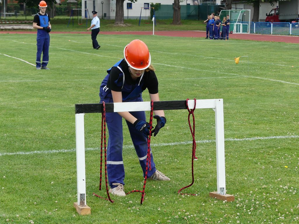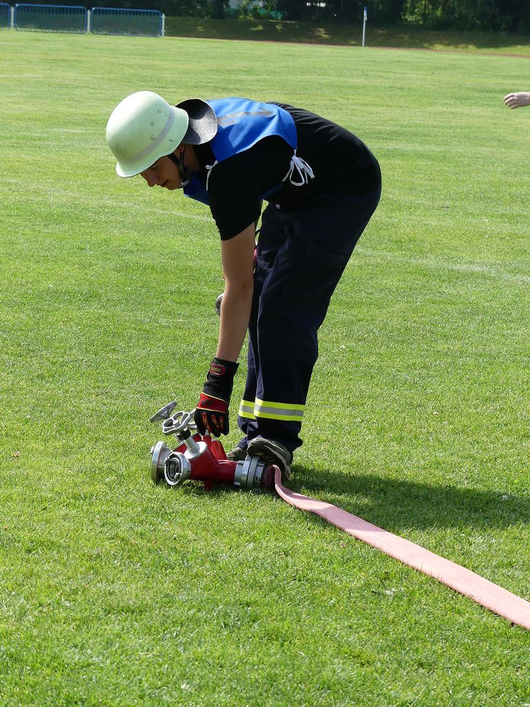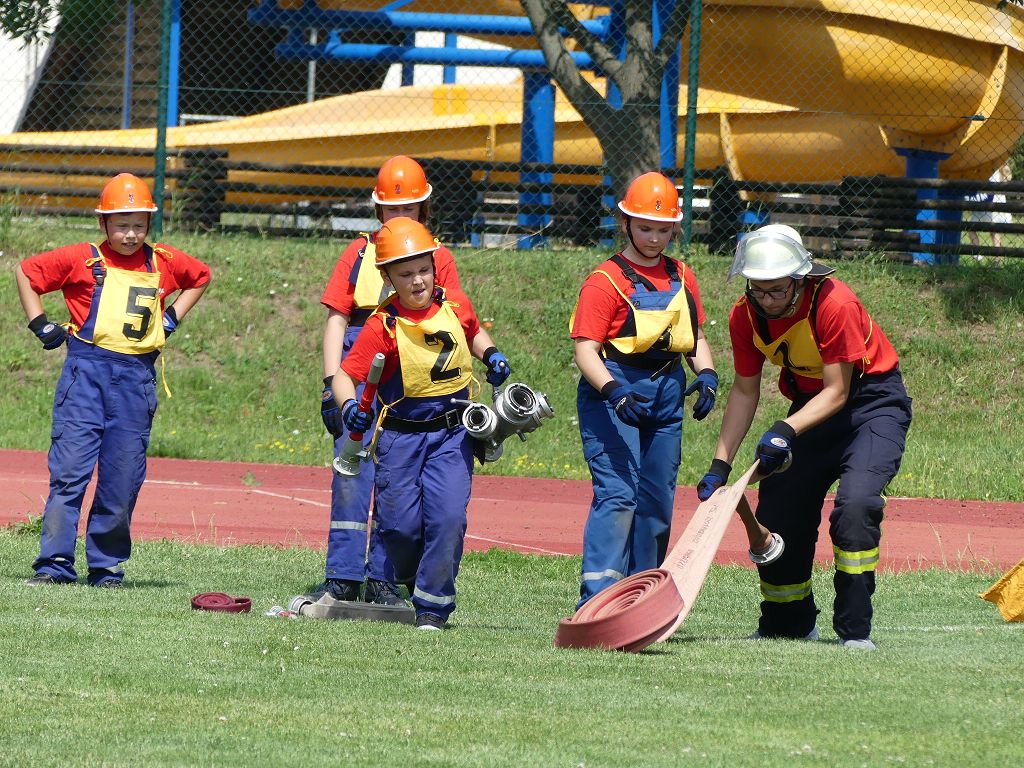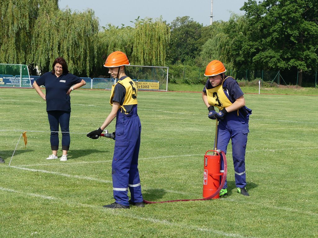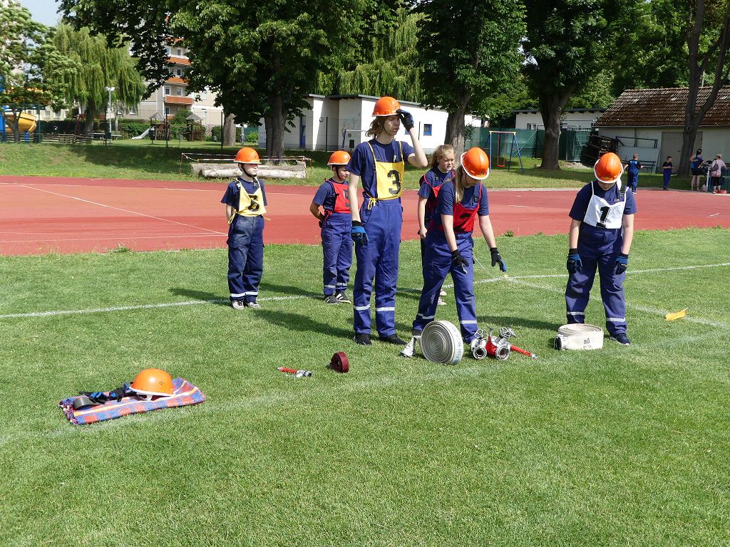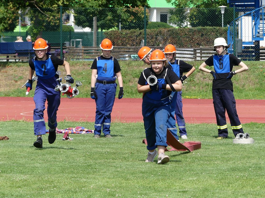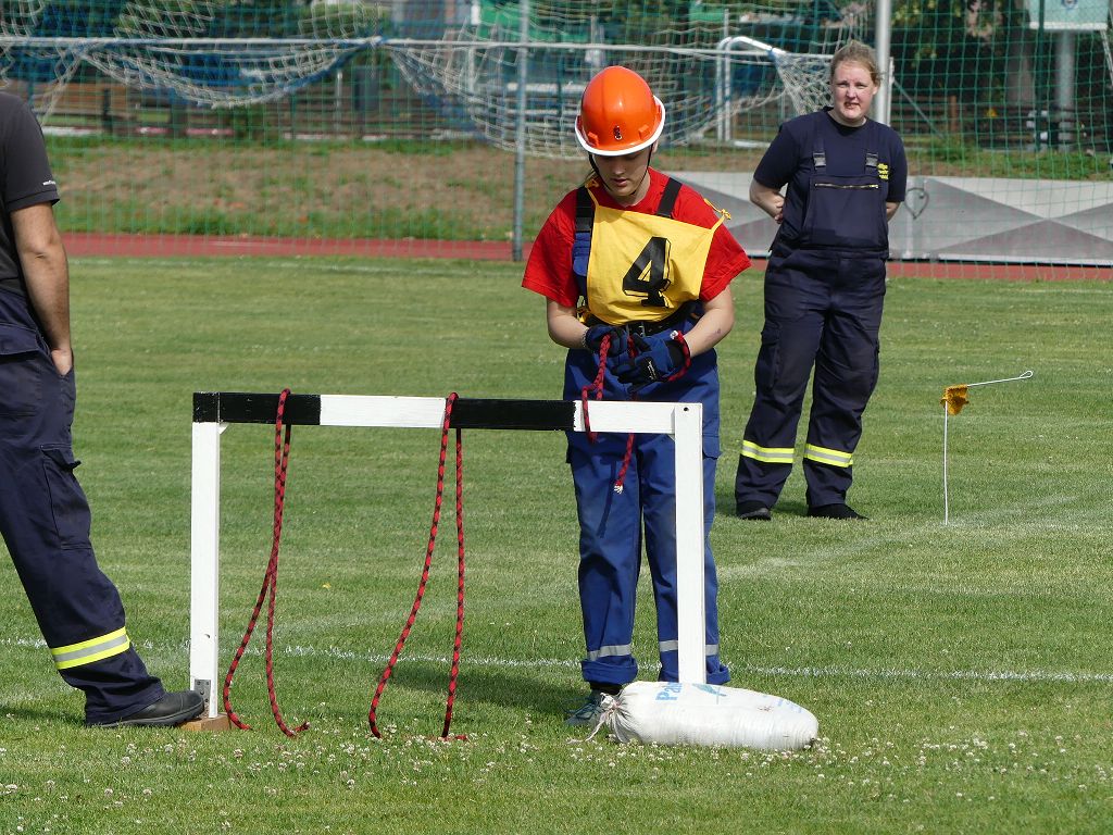 wobei feuerwehrtechnische Aufgaben nach Zeit überwunden werden müssen. Fachbereichsleiter Sandro Schröder konnte am Samstag im Wanzleber Bördestadion, 9 Mannschaften und folgende Gäste begrüßen: Landtagsabgeordnete Silke Schindler, Ordnungsamtsleiter der Stadt Wanzleben Kai Pluntke, den Bürgermeister des Sülzetals Jörg Methner, Wanzlebens Stadtwehrleiter Burkard Wegner, den Vorsitzenden des Feuerwehrverbandes Börde e.V. Harald Hinz, sowie den Verbandsjugendfeuerwehrwart Thomas Ehrhardt. Alle Gäste wünschten den Teilnehmern viel Erfolg beim Wettkampf. Um kurz nach 09.00 Uhr ging dann die erste Mannschaft an den Start. Nach dem Startkommando laufen 2 Jugendfeuerwehrmitglieder zur Verteilerlinie und verbinden einen B-Schlauch mit einem Verteiler. Ein Mitglied läuft zurück und schlägt den nächsten Läufer an, welcher dann mit einem C-Schlauch sich auf dem Weg zum Verteiler macht. Beide Mitglieder laufen dann zum anderen Ende des Schlauches und kuppeln ein Strahlrohr an. Nach dem Durchkriechen einer Hürde wird der nächste Läufer an der Startlinie abgeklatscht. Dieser muss dann 3 Knoten an einer 50 m entfernten Hürde binden und im Anschluss zur Startlinie zurücklaufen. Für 2 weitere Läufer geht es dann im Laufschritt zur Kübelspritze. Während ein Mitglied, Schlauch und Strahlrohr an der Kübelspritze ankuppelt, umrundet das 2. Mitglied diese und schlägt den Läufer am Strahlrohr ab. Dieser läuft zur Kübelspritze und bedient diese. Im Ziel galt es leere Flaschen mit dem Wasserstrahl umzuschießen. Der Strahlrohrführer muss dann zurück zur Startlinie laufen, um den Wettkampf zu beenden. Jede Mannschaft hatte 2 Läufe zu absolvieren. Gegen Mittag begann das Rechnen im Wettkampfbüro. So wurde aus den Laufzeiten und Fehlerpunkten, die Siegermannschaft ermittelt. Fachbereichsleiter Sandro Schröder und der stellvertretende Verbandsjugendfeuerwehrwart Markus Skurk übernahmen dann die Siegerehrung. Die 1.Mannschaft des Lokalmatadoren aus Wanzleben hatte am Ende die Nase vorn und konnte den Siegelpokal in Empfang nehmen. Den 2.Platz erreichte die Jugendfeuerwehr Osterweddingen 2, dicht gefolgt von der Gruppe Wanzleben 2. Verlierer gab es aber nicht, denn alle Gruppen meisterten den Parcours bei den sommerlichen Temperaturen mit Bravour und bekamen hierfür viel Lob. Ein großes Dankeschön richtete Sandro Schröder an die Stadt Wanzleben für die Bereitstellung des Sportplatzes, an den Förderverein der Feuerwehr Wanzleben für die Versorgung mit Speisen und Getränke, sowie an alle Wertungsrichter und Helferinnen und Helfer, sowie natürlich an alle teilnehmenden Jugendfeuerwehren. Herzlichen Glückwunsch noch einmal an den Verbandsmeister 2019.