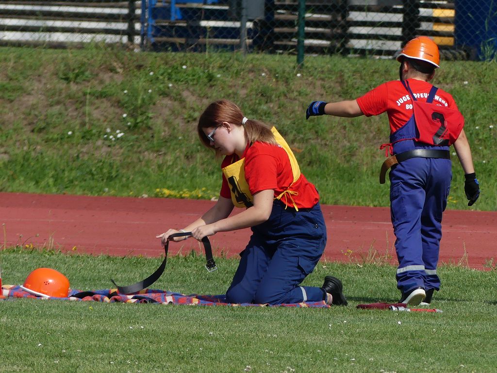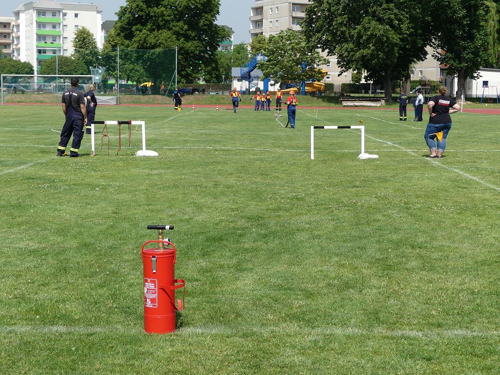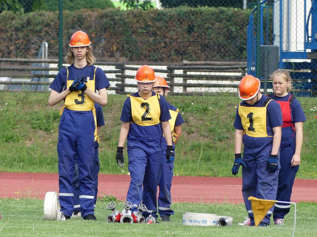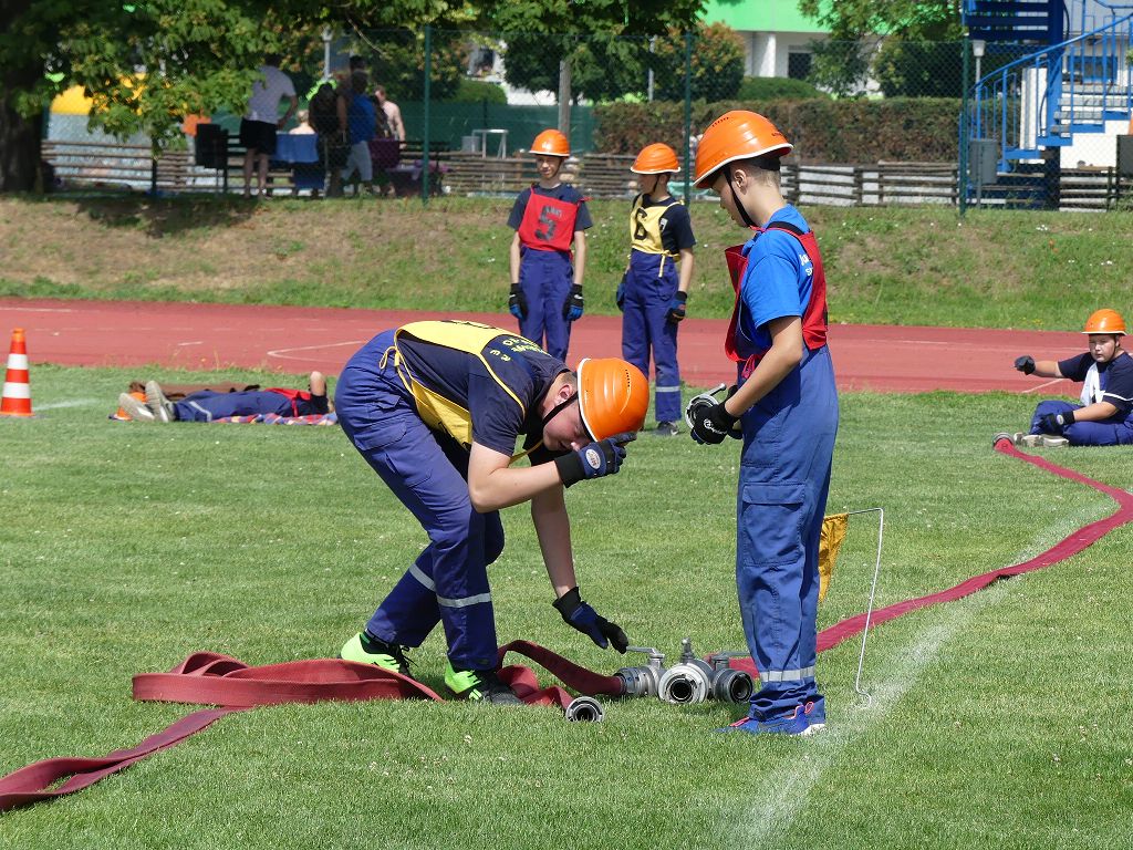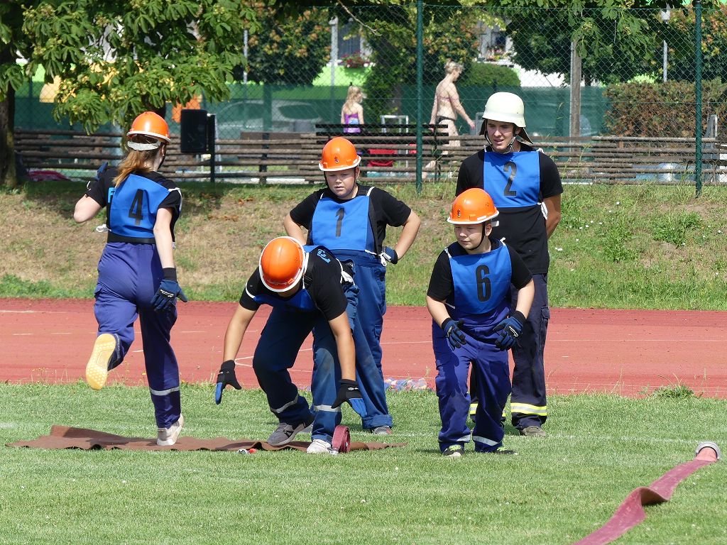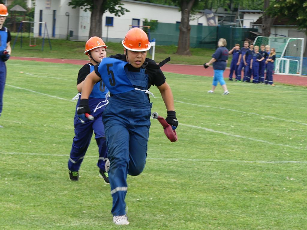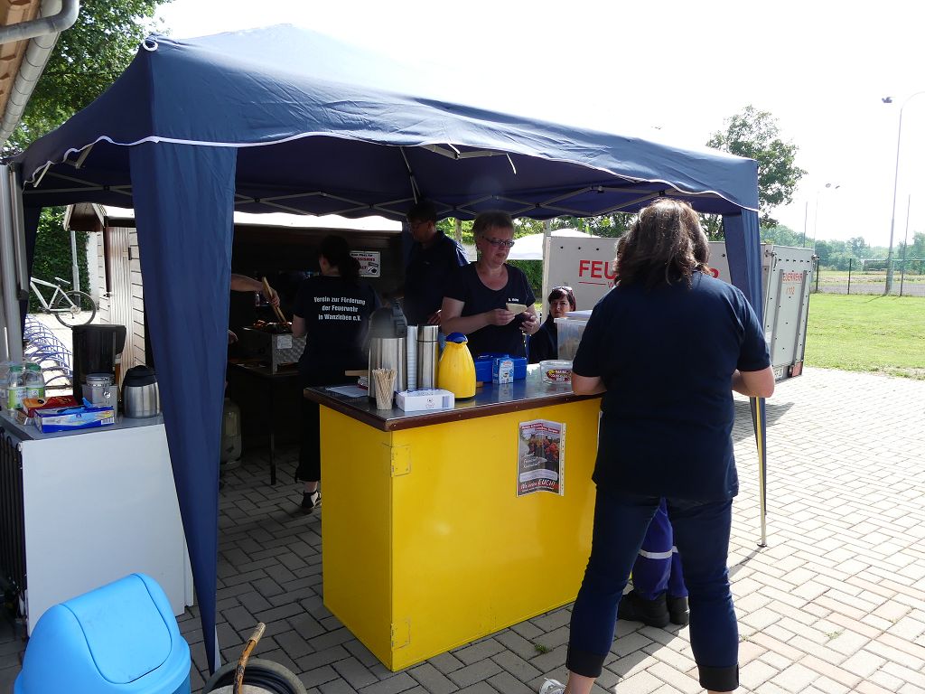 wobei feuerwehrtechnische Aufgaben nach Zeit überwunden werden müssen. Fachbereichsleiter Sandro Schröder konnte am Samstag im Wanzleber Bördestadion, 9 Mannschaften und folgende Gäste begrüßen: Landtagsabgeordnete Silke Schindler, Ordnungsamtsleiter der Stadt Wanzleben Kai Pluntke, den Bürgermeister des Sülzetals Jörg Methner, Wanzlebens Stadtwehrleiter Burkard Wegner, den Vorsitzenden des Feuerwehrverbandes Börde e.V. Harald Hinz, sowie den Verbandsjugendfeuerwehrwart Thomas Ehrhardt. Alle Gäste wünschten den Teilnehmern viel Erfolg beim Wettkampf. Um kurz nach 09.00 Uhr ging dann die erste Mannschaft an den Start. Nach dem Startkommando laufen 2 Jugendfeuerwehrmitglieder zur Verteilerlinie und verbinden einen B-Schlauch mit einem Verteiler. Ein Mitglied läuft zurück und schlägt den nächsten Läufer an, welcher dann mit einem C-Schlauch sich auf dem Weg zum Verteiler macht. Beide Mitglieder laufen dann zum anderen Ende des Schlauches und kuppeln ein Strahlrohr an. Nach dem Durchkriechen einer Hürde wird der nächste Läufer an der Startlinie abgeklatscht. Dieser muss dann 3 Knoten an einer 50 m entfernten Hürde binden und im Anschluss zur Startlinie zurücklaufen. Für 2 weitere Läufer geht es dann im Laufschritt zur Kübelspritze. Während ein Mitglied, Schlauch und Strahlrohr an der Kübelspritze ankuppelt, umrundet das 2. Mitglied diese und schlägt den Läufer am Strahlrohr ab. Dieser läuft zur Kübelspritze und bedient diese. Im Ziel galt es leere Flaschen mit dem Wasserstrahl umzuschießen. Der Strahlrohrführer muss dann zurück zur Startlinie laufen, um den Wettkampf zu beenden. Jede Mannschaft hatte 2 Läufe zu absolvieren. Gegen Mittag begann das Rechnen im Wettkampfbüro. So wurde aus den Laufzeiten und Fehlerpunkten, die Siegermannschaft ermittelt. Fachbereichsleiter Sandro Schröder und der stellvertretende Verbandsjugendfeuerwehrwart Markus Skurk übernahmen dann die Siegerehrung. Die 1.Mannschaft des Lokalmatadoren aus Wanzleben hatte am Ende die Nase vorn und konnte den Siegelpokal in Empfang nehmen. Den 2.Platz erreichte die Jugendfeuerwehr Osterweddingen 2, dicht gefolgt von der Gruppe Wanzleben 2. Verlierer gab es aber nicht, denn alle Gruppen meisterten den Parcours bei den sommerlichen Temperaturen mit Bravour und bekamen hierfür viel Lob. Ein großes Dankeschön richtete Sandro Schröder an die Stadt Wanzleben für die Bereitstellung des Sportplatzes, an den Förderverein der Feuerwehr Wanzleben für die Versorgung mit Speisen und Getränke, sowie an alle Wertungsrichter und Helferinnen und Helfer, sowie natürlich an alle teilnehmenden Jugendfeuerwehren. Herzlichen Glückwunsch noch einmal an den Verbandsmeister 2019.