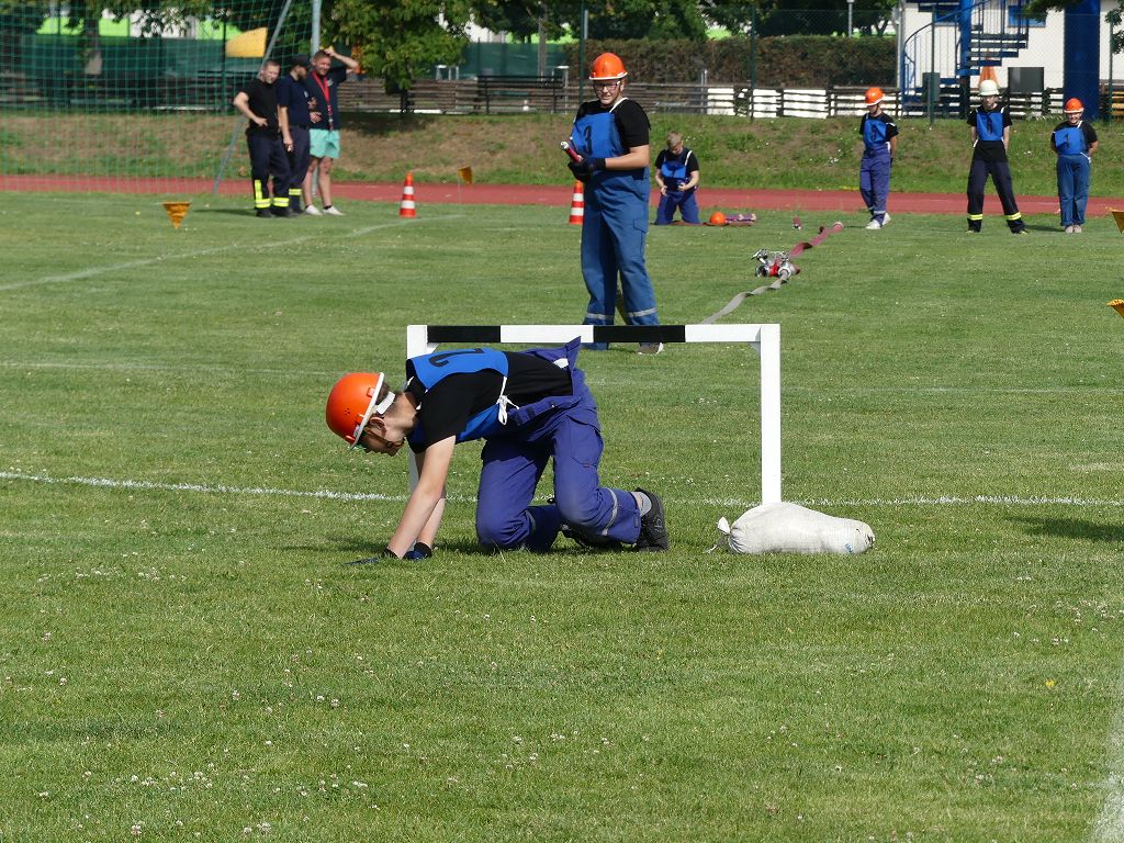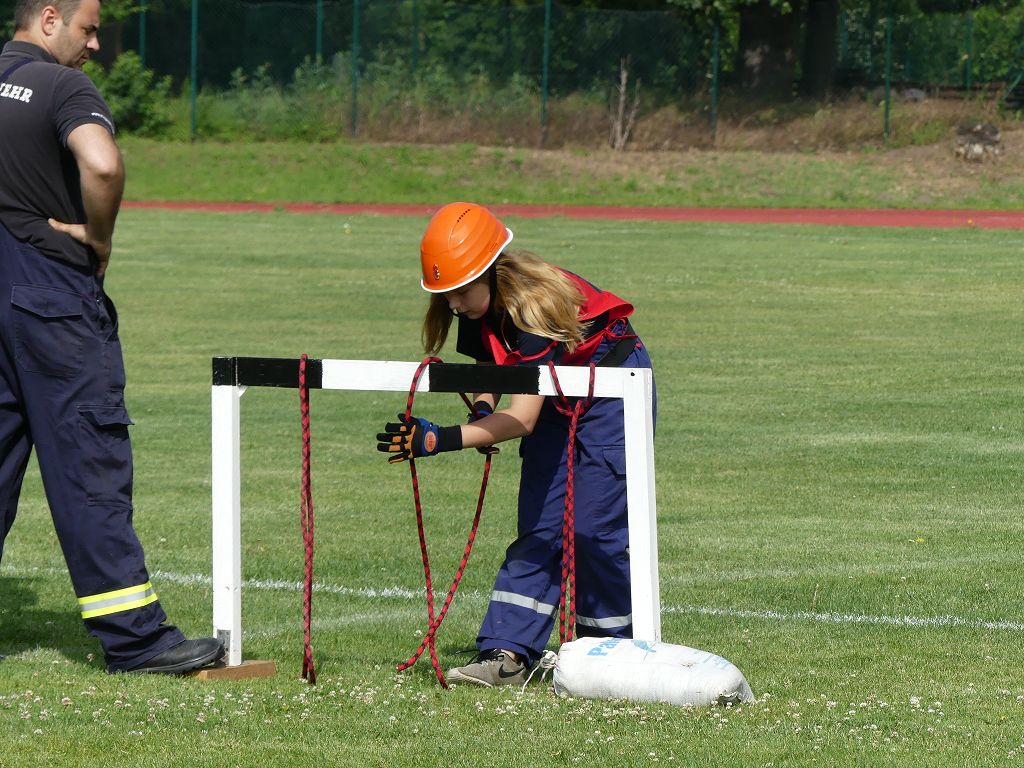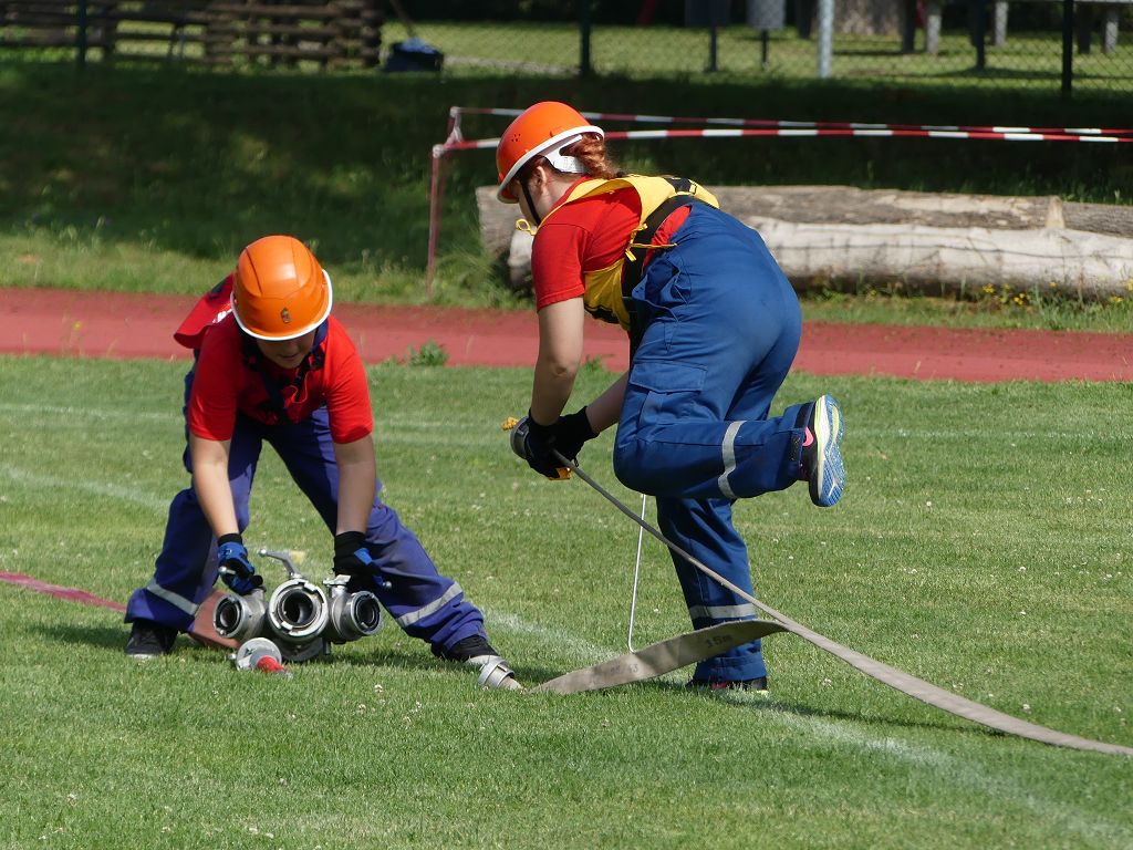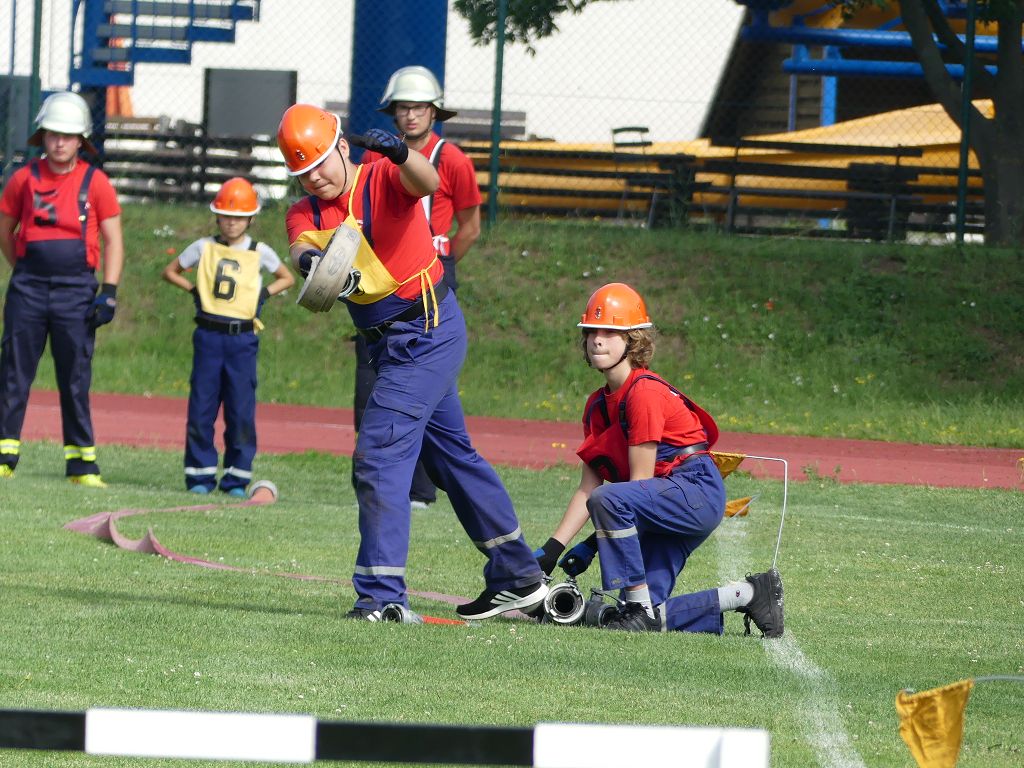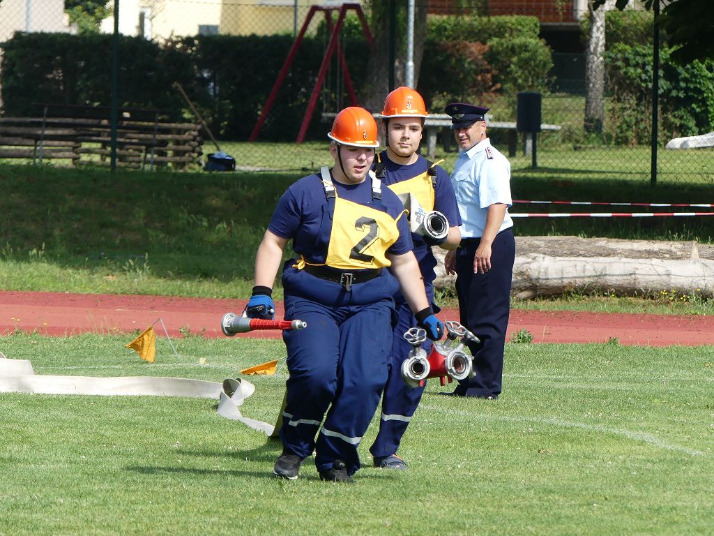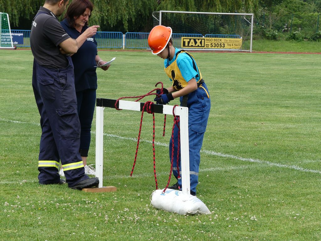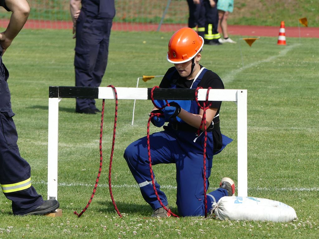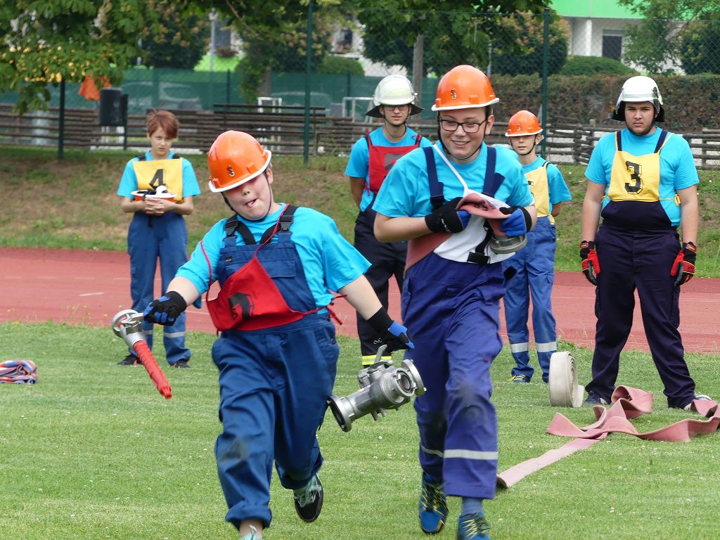 wobei feuerwehrtechnische Aufgaben nach Zeit überwunden werden müssen. Fachbereichsleiter Sandro Schröder konnte am Samstag im Wanzleber Bördestadion, 9 Mannschaften und folgende Gäste begrüßen: Landtagsabgeordnete Silke Schindler, Ordnungsamtsleiter der Stadt Wanzleben Kai Pluntke, den Bürgermeister des Sülzetals Jörg Methner, Wanzlebens Stadtwehrleiter Burkard Wegner, den Vorsitzenden des Feuerwehrverbandes Börde e.V. Harald Hinz, sowie den Verbandsjugendfeuerwehrwart Thomas Ehrhardt. Alle Gäste wünschten den Teilnehmern viel Erfolg beim Wettkampf. Um kurz nach 09.00 Uhr ging dann die erste Mannschaft an den Start. Nach dem Startkommando laufen 2 Jugendfeuerwehrmitglieder zur Verteilerlinie und verbinden einen B-Schlauch mit einem Verteiler. Ein Mitglied läuft zurück und schlägt den nächsten Läufer an, welcher dann mit einem C-Schlauch sich auf dem Weg zum Verteiler macht. Beide Mitglieder laufen dann zum anderen Ende des Schlauches und kuppeln ein Strahlrohr an. Nach dem Durchkriechen einer Hürde wird der nächste Läufer an der Startlinie abgeklatscht. Dieser muss dann 3 Knoten an einer 50 m entfernten Hürde binden und im Anschluss zur Startlinie zurücklaufen. Für 2 weitere Läufer geht es dann im Laufschritt zur Kübelspritze. Während ein Mitglied, Schlauch und Strahlrohr an der Kübelspritze ankuppelt, umrundet das 2. Mitglied diese und schlägt den Läufer am Strahlrohr ab. Dieser läuft zur Kübelspritze und bedient diese. Im Ziel galt es leere Flaschen mit dem Wasserstrahl umzuschießen. Der Strahlrohrführer muss dann zurück zur Startlinie laufen, um den Wettkampf zu beenden. Jede Mannschaft hatte 2 Läufe zu absolvieren. Gegen Mittag begann das Rechnen im Wettkampfbüro. So wurde aus den Laufzeiten und Fehlerpunkten, die Siegermannschaft ermittelt. Fachbereichsleiter Sandro Schröder und der stellvertretende Verbandsjugendfeuerwehrwart Markus Skurk übernahmen dann die Siegerehrung. Die 1.Mannschaft des Lokalmatadoren aus Wanzleben hatte am Ende die Nase vorn und konnte den Siegelpokal in Empfang nehmen. Den 2.Platz erreichte die Jugendfeuerwehr Osterweddingen 2, dicht gefolgt von der Gruppe Wanzleben 2. Verlierer gab es aber nicht, denn alle Gruppen meisterten den Parcours bei den sommerlichen Temperaturen mit Bravour und bekamen hierfür viel Lob. Ein großes Dankeschön richtete Sandro Schröder an die Stadt Wanzleben für die Bereitstellung des Sportplatzes, an den Förderverein der Feuerwehr Wanzleben für die Versorgung mit Speisen und Getränke, sowie an alle Wertungsrichter und Helferinnen und Helfer, sowie natürlich an alle teilnehmenden Jugendfeuerwehren. Herzlichen Glückwunsch noch einmal an den Verbandsmeister 2019.