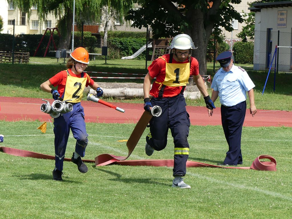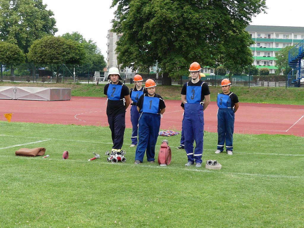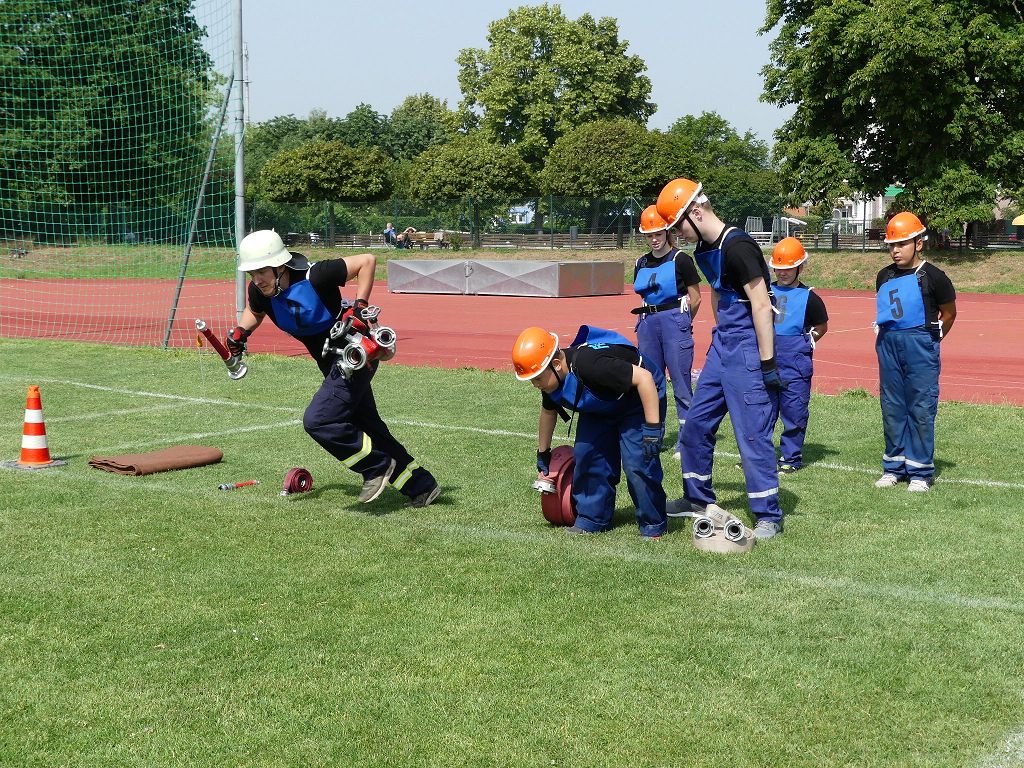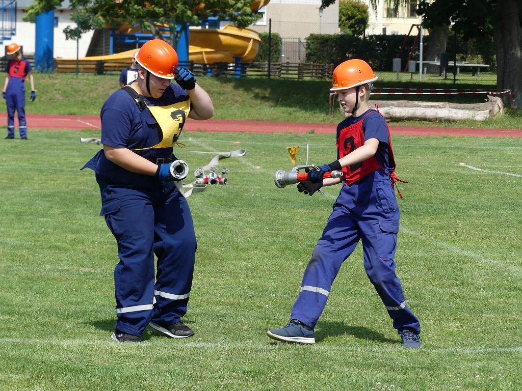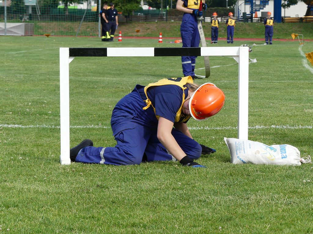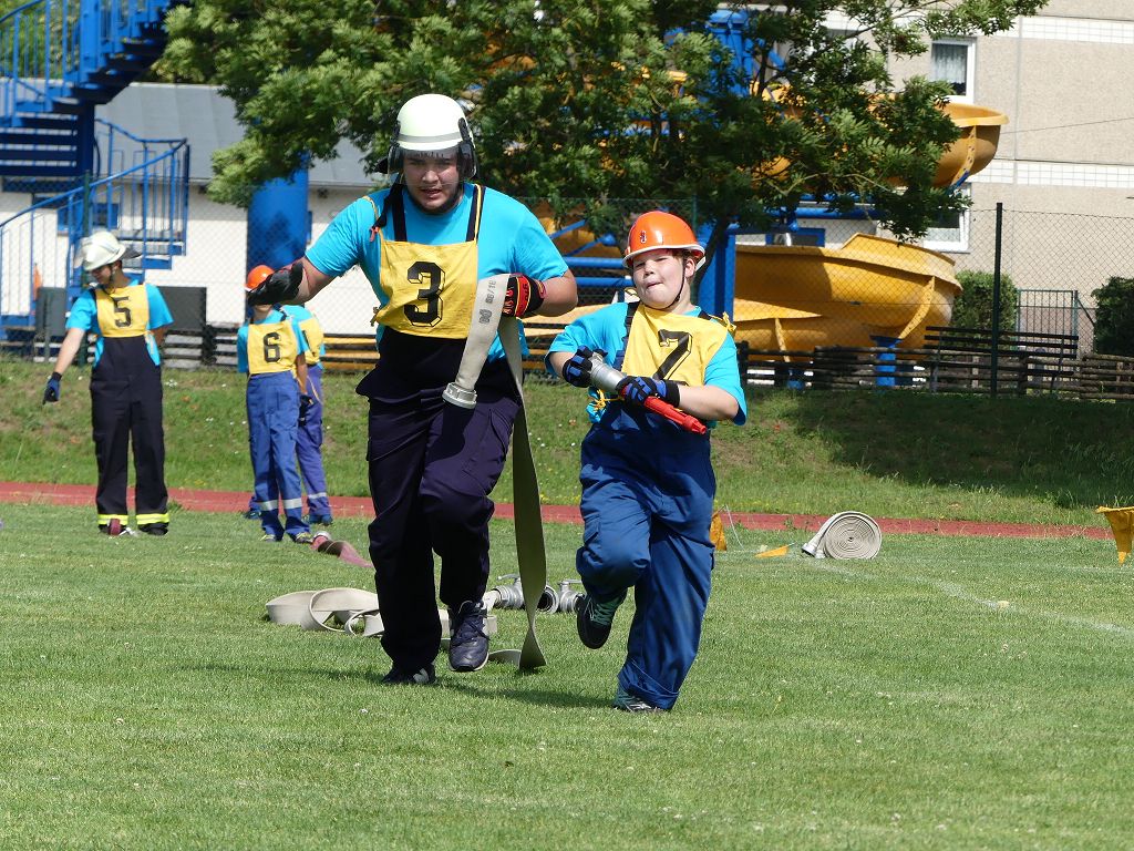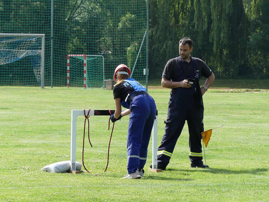 wobei feuerwehrtechnische Aufgaben nach Zeit überwunden werden müssen. Fachbereichsleiter Sandro Schröder konnte am Samstag im Wanzleber Bördestadion, 9 Mannschaften und folgende Gäste begrüßen: Landtagsabgeordnete Silke Schindler, Ordnungsamtsleiter der Stadt Wanzleben Kai Pluntke, den Bürgermeister des Sülzetals Jörg Methner, Wanzlebens Stadtwehrleiter Burkard Wegner, den Vorsitzenden des Feuerwehrverbandes Börde e.V. Harald Hinz, sowie den Verbandsjugendfeuerwehrwart Thomas Ehrhardt. Alle Gäste wünschten den Teilnehmern viel Erfolg beim Wettkampf. Um kurz nach 09.00 Uhr ging dann die erste Mannschaft an den Start. Nach dem Startkommando laufen 2 Jugendfeuerwehrmitglieder zur Verteilerlinie und verbinden einen B-Schlauch mit einem Verteiler. Ein Mitglied läuft zurück und schlägt den nächsten Läufer an, welcher dann mit einem C-Schlauch sich auf dem Weg zum Verteiler macht. Beide Mitglieder laufen dann zum anderen Ende des Schlauches und kuppeln ein Strahlrohr an. Nach dem Durchkriechen einer Hürde wird der nächste Läufer an der Startlinie abgeklatscht. Dieser muss dann 3 Knoten an einer 50 m entfernten Hürde binden und im Anschluss zur Startlinie zurücklaufen. Für 2 weitere Läufer geht es dann im Laufschritt zur Kübelspritze. Während ein Mitglied, Schlauch und Strahlrohr an der Kübelspritze ankuppelt, umrundet das 2. Mitglied diese und schlägt den Läufer am Strahlrohr ab. Dieser läuft zur Kübelspritze und bedient diese. Im Ziel galt es leere Flaschen mit dem Wasserstrahl umzuschießen. Der Strahlrohrführer muss dann zurück zur Startlinie laufen, um den Wettkampf zu beenden. Jede Mannschaft hatte 2 Läufe zu absolvieren. Gegen Mittag begann das Rechnen im Wettkampfbüro. So wurde aus den Laufzeiten und Fehlerpunkten, die Siegermannschaft ermittelt. Fachbereichsleiter Sandro Schröder und der stellvertretende Verbandsjugendfeuerwehrwart Markus Skurk übernahmen dann die Siegerehrung. Die 1.Mannschaft des Lokalmatadoren aus Wanzleben hatte am Ende die Nase vorn und konnte den Siegelpokal in Empfang nehmen. Den 2.Platz erreichte die Jugendfeuerwehr Osterweddingen 2, dicht gefolgt von der Gruppe Wanzleben 2. Verlierer gab es aber nicht, denn alle Gruppen meisterten den Parcours bei den sommerlichen Temperaturen mit Bravour und bekamen hierfür viel Lob. Ein großes Dankeschön richtete Sandro Schröder an die Stadt Wanzleben für die Bereitstellung des Sportplatzes, an den Förderverein der Feuerwehr Wanzleben für die Versorgung mit Speisen und Getränke, sowie an alle Wertungsrichter und Helferinnen und Helfer, sowie natürlich an alle teilnehmenden Jugendfeuerwehren. Herzlichen Glückwunsch noch einmal an den Verbandsmeister 2019.