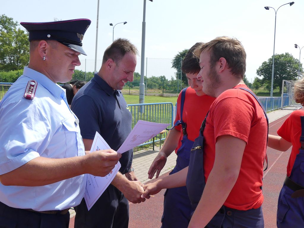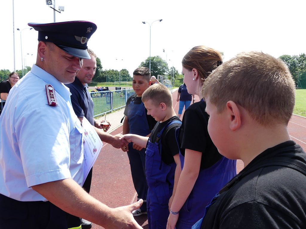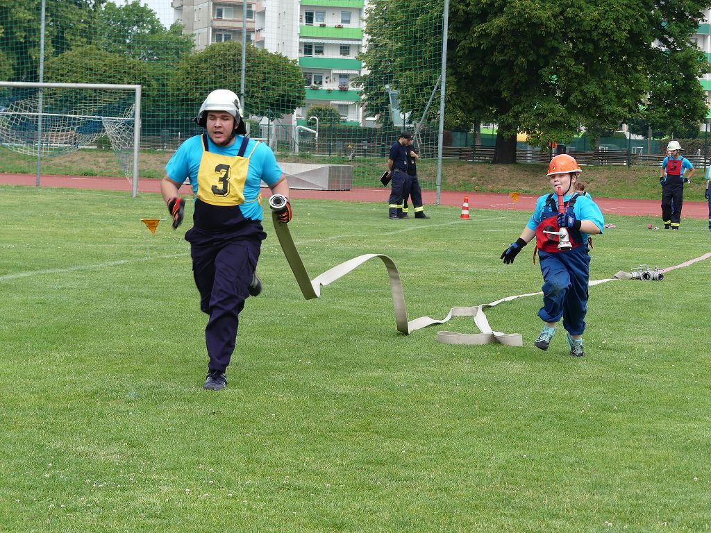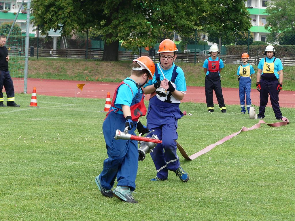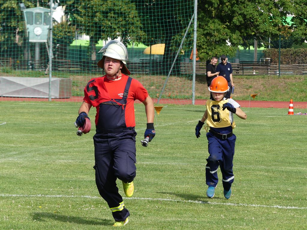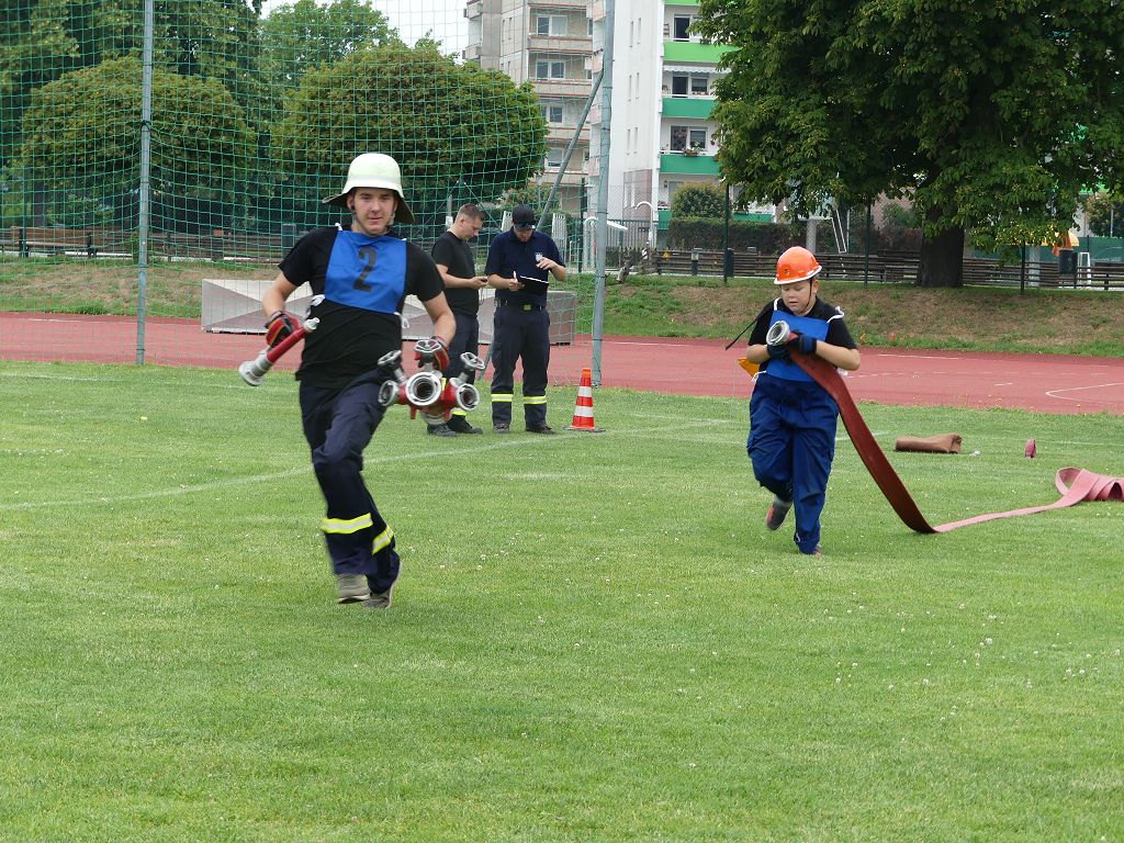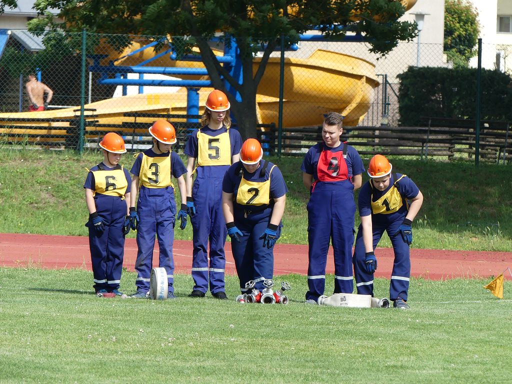 wobei feuerwehrtechnische Aufgaben nach Zeit überwunden werden müssen. Fachbereichsleiter Sandro Schröder konnte am Samstag im Wanzleber Bördestadion, 9 Mannschaften und folgende Gäste begrüßen: Landtagsabgeordnete Silke Schindler, Ordnungsamtsleiter der Stadt Wanzleben Kai Pluntke, den Bürgermeister des Sülzetals Jörg Methner, Wanzlebens Stadtwehrleiter Burkard Wegner, den Vorsitzenden des Feuerwehrverbandes Börde e.V. Harald Hinz, sowie den Verbandsjugendfeuerwehrwart Thomas Ehrhardt. Alle Gäste wünschten den Teilnehmern viel Erfolg beim Wettkampf. Um kurz nach 09.00 Uhr ging dann die erste Mannschaft an den Start. Nach dem Startkommando laufen 2 Jugendfeuerwehrmitglieder zur Verteilerlinie und verbinden einen B-Schlauch mit einem Verteiler. Ein Mitglied läuft zurück und schlägt den nächsten Läufer an, welcher dann mit einem C-Schlauch sich auf dem Weg zum Verteiler macht. Beide Mitglieder laufen dann zum anderen Ende des Schlauches und kuppeln ein Strahlrohr an. Nach dem Durchkriechen einer Hürde wird der nächste Läufer an der Startlinie abgeklatscht. Dieser muss dann 3 Knoten an einer 50 m entfernten Hürde binden und im Anschluss zur Startlinie zurücklaufen. Für 2 weitere Läufer geht es dann im Laufschritt zur Kübelspritze. Während ein Mitglied, Schlauch und Strahlrohr an der Kübelspritze ankuppelt, umrundet das 2. Mitglied diese und schlägt den Läufer am Strahlrohr ab. Dieser läuft zur Kübelspritze und bedient diese. Im Ziel galt es leere Flaschen mit dem Wasserstrahl umzuschießen. Der Strahlrohrführer muss dann zurück zur Startlinie laufen, um den Wettkampf zu beenden. Jede Mannschaft hatte 2 Läufe zu absolvieren. Gegen Mittag begann das Rechnen im Wettkampfbüro. So wurde aus den Laufzeiten und Fehlerpunkten, die Siegermannschaft ermittelt. Fachbereichsleiter Sandro Schröder und der stellvertretende Verbandsjugendfeuerwehrwart Markus Skurk übernahmen dann die Siegerehrung. Die 1.Mannschaft des Lokalmatadoren aus Wanzleben hatte am Ende die Nase vorn und konnte den Siegelpokal in Empfang nehmen. Den 2.Platz erreichte die Jugendfeuerwehr Osterweddingen 2, dicht gefolgt von der Gruppe Wanzleben 2. Verlierer gab es aber nicht, denn alle Gruppen meisterten den Parcours bei den sommerlichen Temperaturen mit Bravour und bekamen hierfür viel Lob. Ein großes Dankeschön richtete Sandro Schröder an die Stadt Wanzleben für die Bereitstellung des Sportplatzes, an den Förderverein der Feuerwehr Wanzleben für die Versorgung mit Speisen und Getränke, sowie an alle Wertungsrichter und Helferinnen und Helfer, sowie natürlich an alle teilnehmenden Jugendfeuerwehren. Herzlichen Glückwunsch noch einmal an den Verbandsmeister 2019.